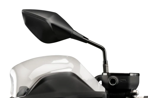Diseñados con una carcasa envolvente de plástico aerodinámico, los retrovisores Z3 ofrecen una óptima resistencia al aire, reduciendo las vibraciones y el impacto del viento, incluso a altas velocidades. La carcasa envuelve un espejo convexo y antireflectante, que proporciona una visión clara y amplia del entorno, mejorando así la seguridad del piloto.