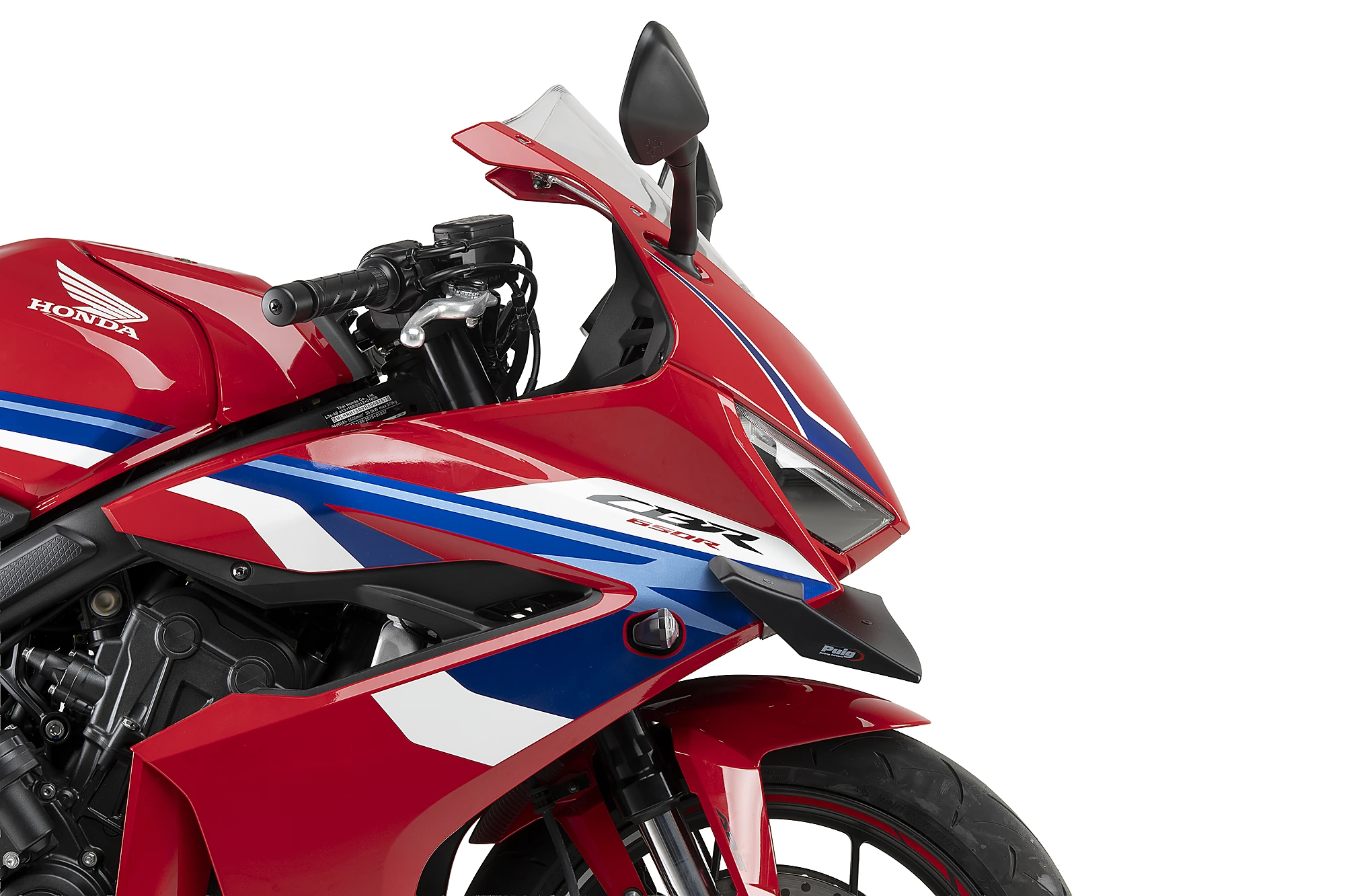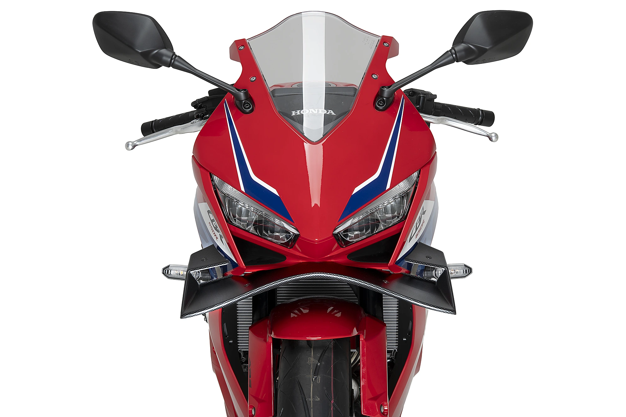 El alerón frontal GP para la Honda CBR650R 24’ está plenamente inspirado en los alerones utilizados en MotoGP, caracterizados por su diseño de doble superficie que permite obtener mayores prestaciones aerodinámicas.