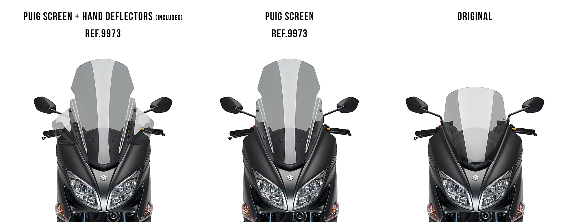 Este producto se puede personalizar ya que se puede montar sólo la pantalla o la pantalla junto a los deflectores de manos para una mayor protección aerodinámica en manos, antebrazos y hombros.