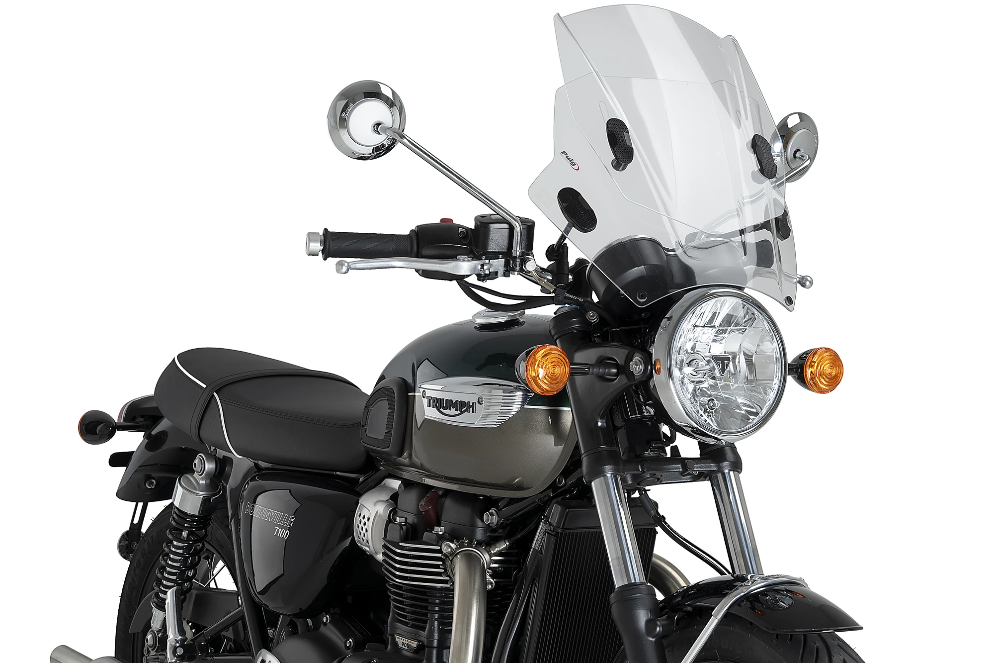 Renueva la imagen de tu moto con faro redondo con el innovador carenabris Up&Down de Puig. Fabricado en metacrilato de alto impacto de 3mm, material que lo hace altamente resistente a impactos y férreo ante las inclemencias meteorológicas, este producto destaca por su diseño versátil y por su facilidad de montaje, pero sobre todo por las dos pantallas que lo componen, que permiten regular la altura del carenabris brindando una protección total ante el viento.