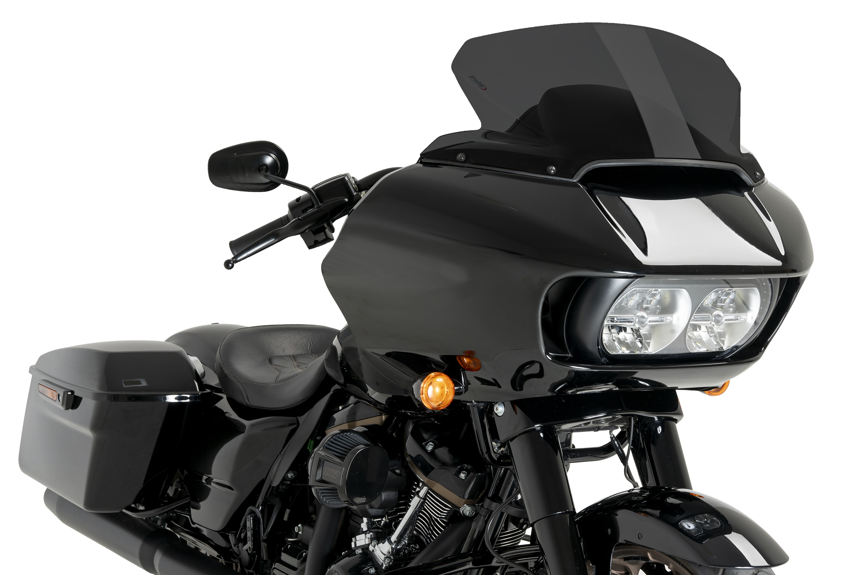 Para la Harley Davidson Road Glide 14’-23’, la versión touring está disponible en color ahumado, ahumado oscuro y transparente.