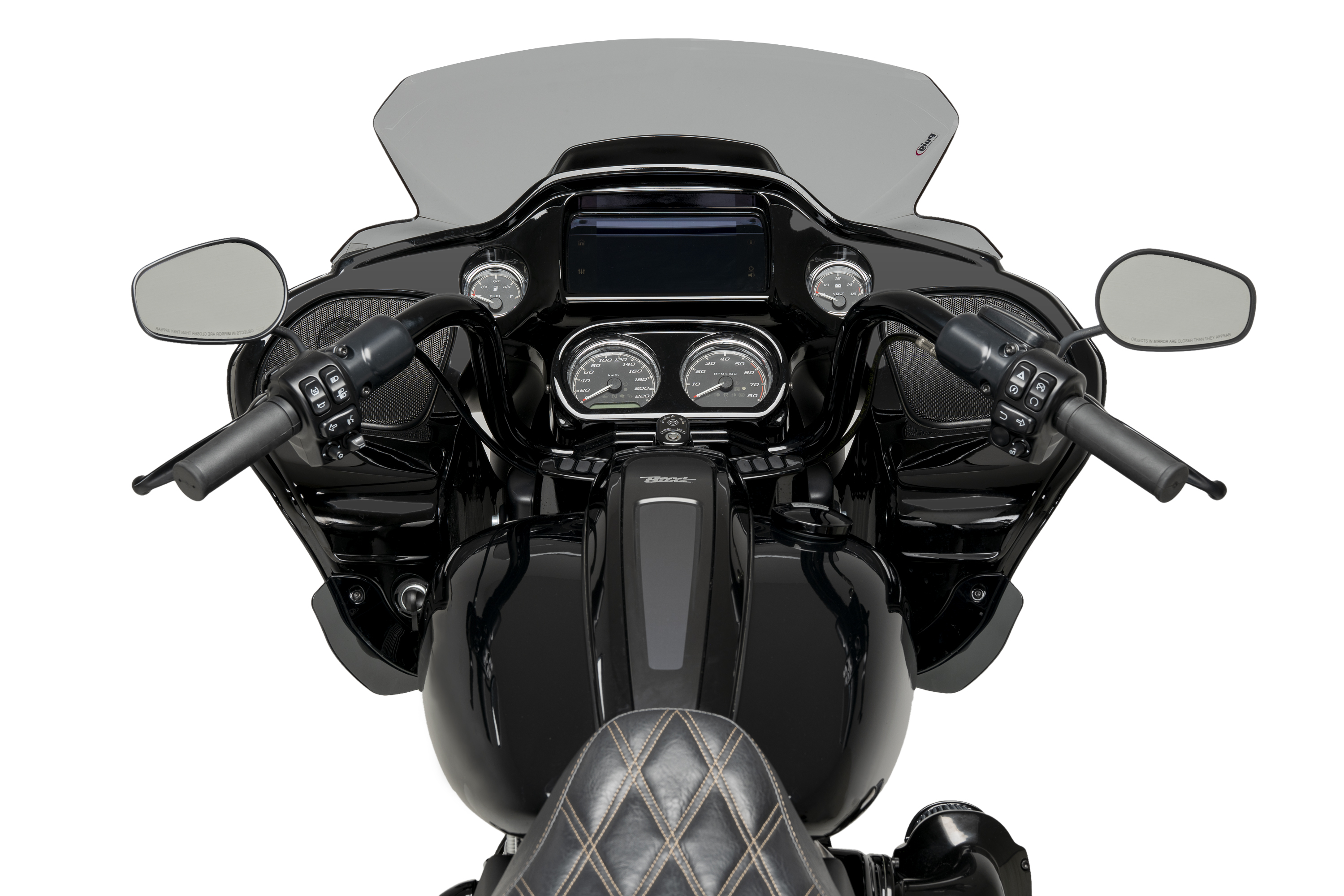 Está fabricada en material acrílico de alta calidad, con 4mm de grosor y con una máxima transparencia, específicamente diseñada para la Harley Davidson Road Glide 14’-23’.