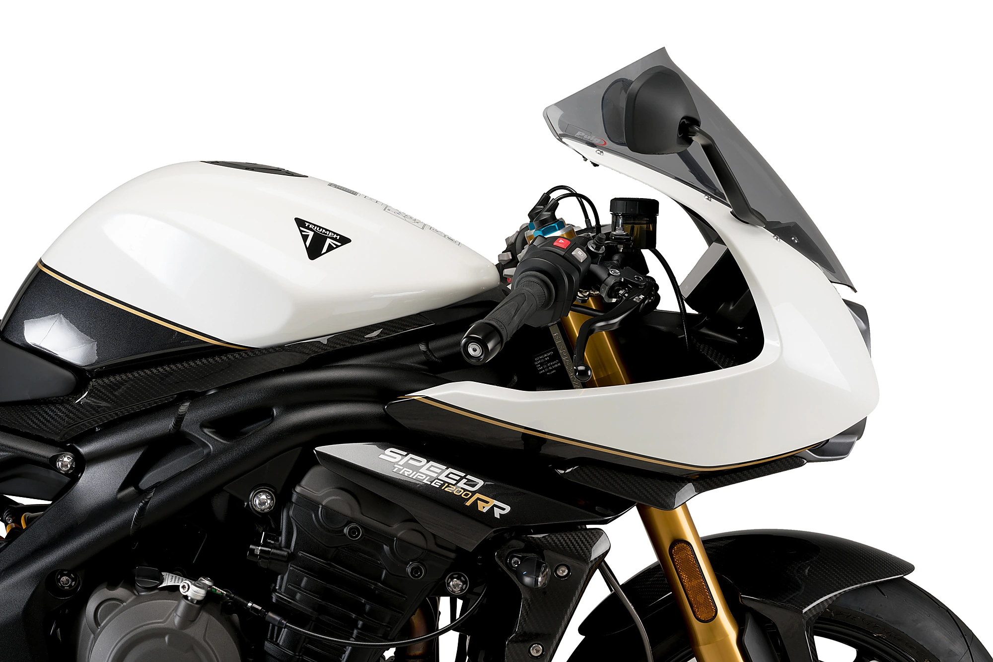 Diseñada específicamente para la Triumph Speed Triple 1200RR’22 destaca por su exquisito diseño que encaja perfectamente con las líneas elegantes de este modelo, pero aumentando considerablemente la protección aerodinámica. Obteniendo el equilibrio perfecto entre estética y funcionalidad.