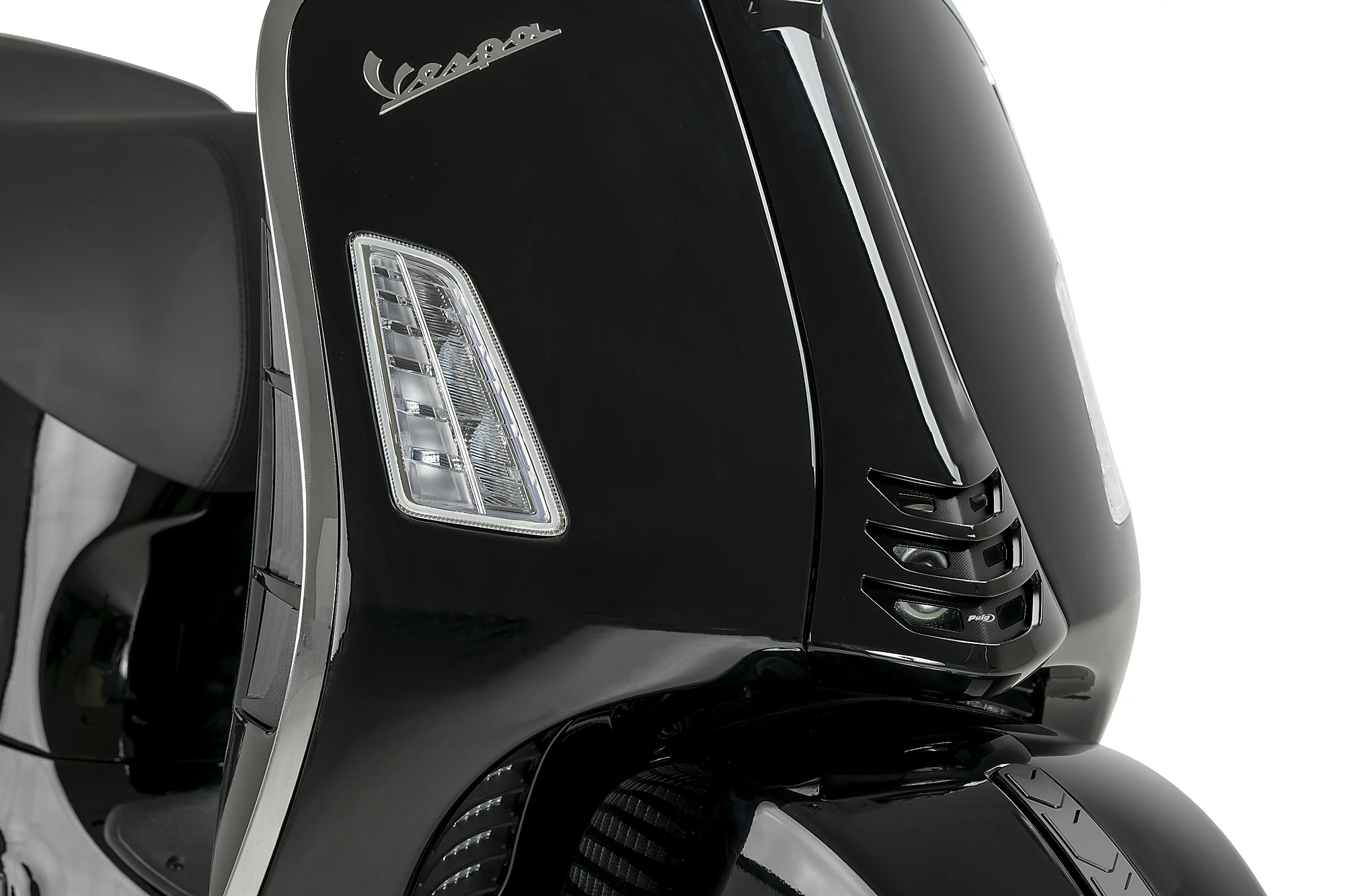 Fabricado íntegramente con piezas fresadas en aluminio anodizado de alta calidad, Puig ha diseñado este embellecedor de bocina con el objetivo de lograr una fusión perfecta entre tradición y modernidad. Su diseño ha sido meticulosamente desarrollado para respetar el estilo clásico de las motos Vespa, manteniendo la esencia que ha convertido a este icónico scooter en un símbolo de elegancia y sofisticación dentro del mundo del motociclismo.