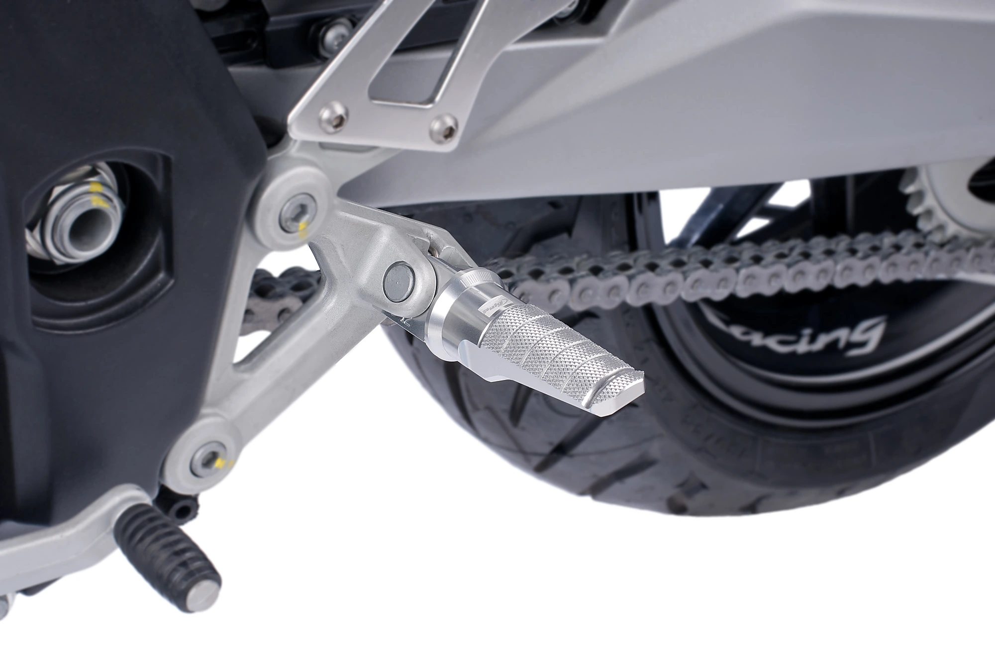 Las estriberas racing de Puig están especialmente diseñadas para motos R y ofrecen el máximo agarre al conductor y al pasajero. Su atractivo diseño deportivo las convierte en el complemento perfecto para las motos más radicales, cuya estética recibe un toque aún más extremo.