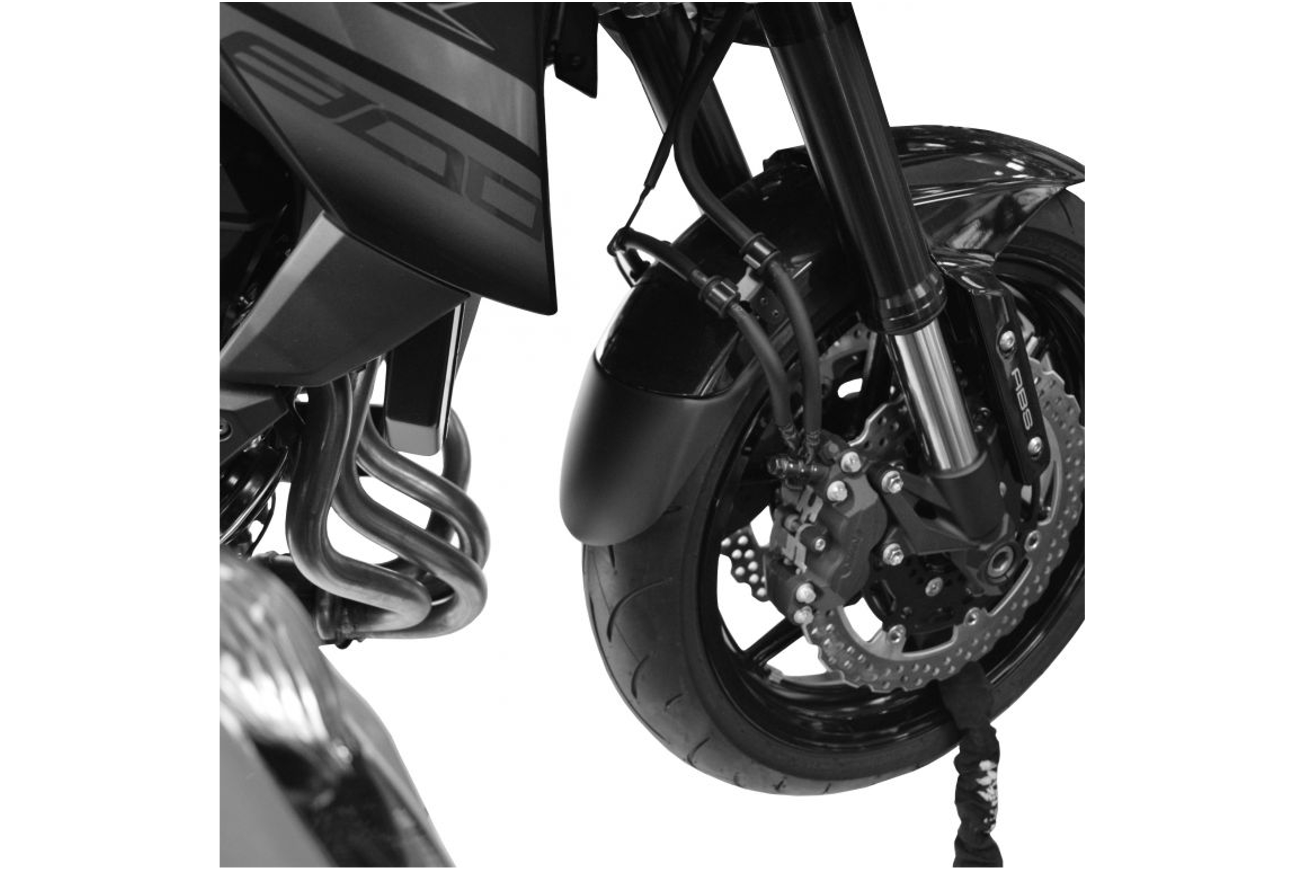 Apórtale mayor protección a tu moto con el faldón guardabarros delantero de Puig. Extensión fabricada en ABS, material altamente resistente a los impactos, será la protección ideal para evitar que al paso de tu rueda pueda saltar cualquier tipo de elemento, impactando conta el cuerpo de tu moto o directamente contra ti. El faldón se sirve en acabado negro para poder adherirla a la estética de la moto sin que esta se vea resentida.