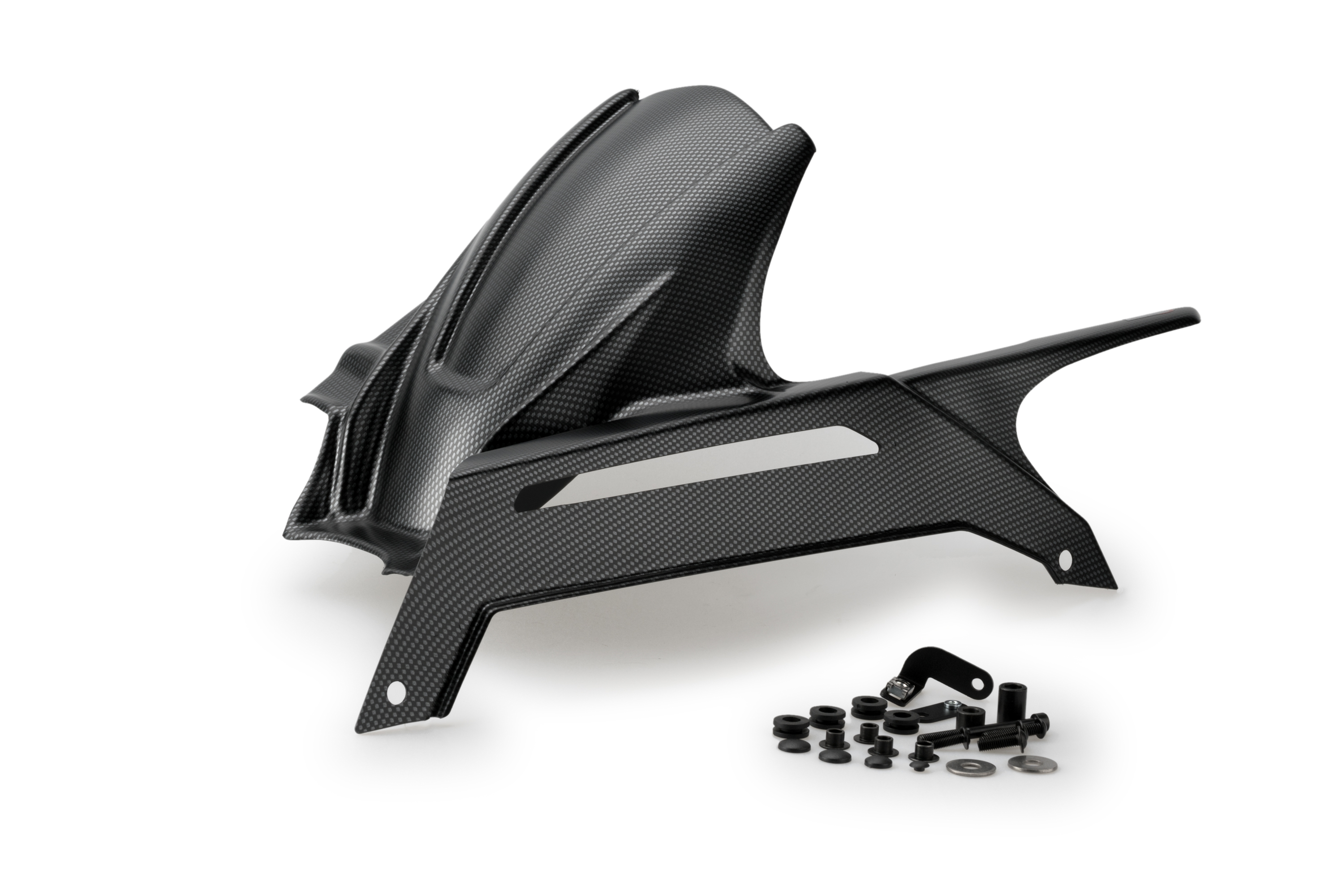 Los guardabarros traseros Puig están disponibles en dos acabados diferentes: negro mate y símil carbono.