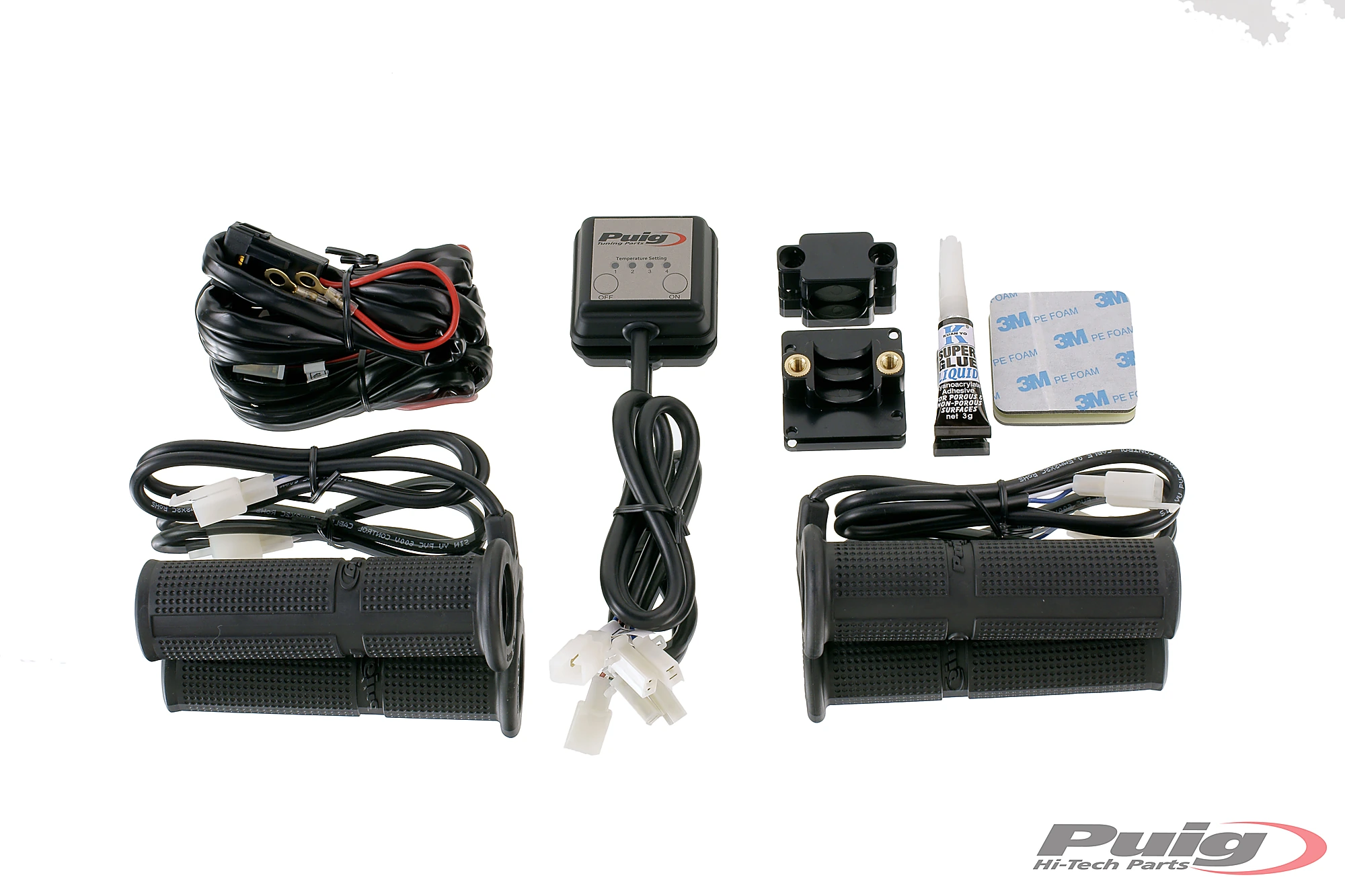 Los puños calefactables Puig se entregan con todo lo necesario para una instalación rápida y sencilla en el sistema eléctrico de la moto, incluyendo instrucciones detalladas que facilitan el proceso de montaje.