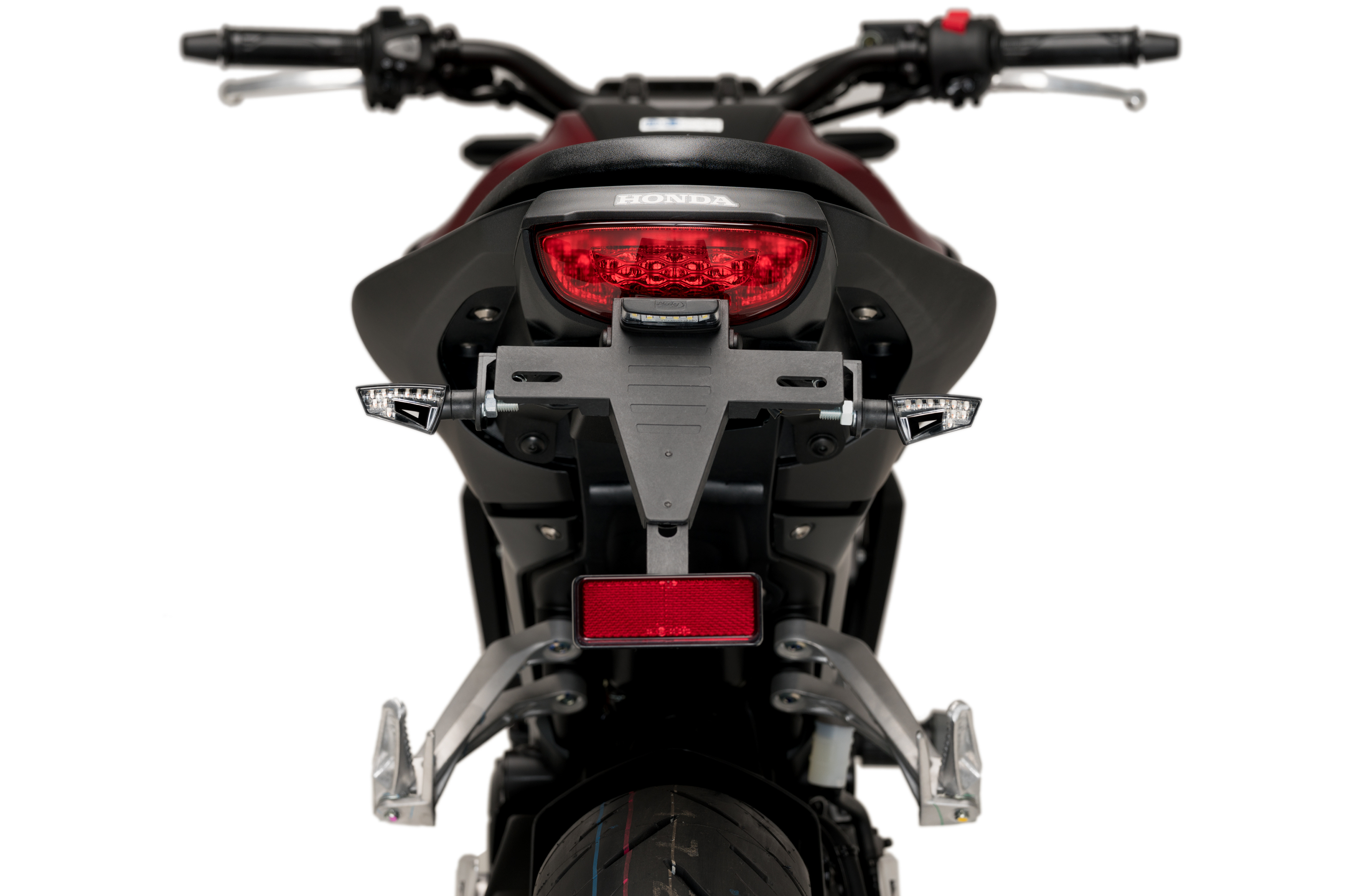 Este portamatrículas está diseñado para aprovechar los intermitentes y la luz de matrícula originales.