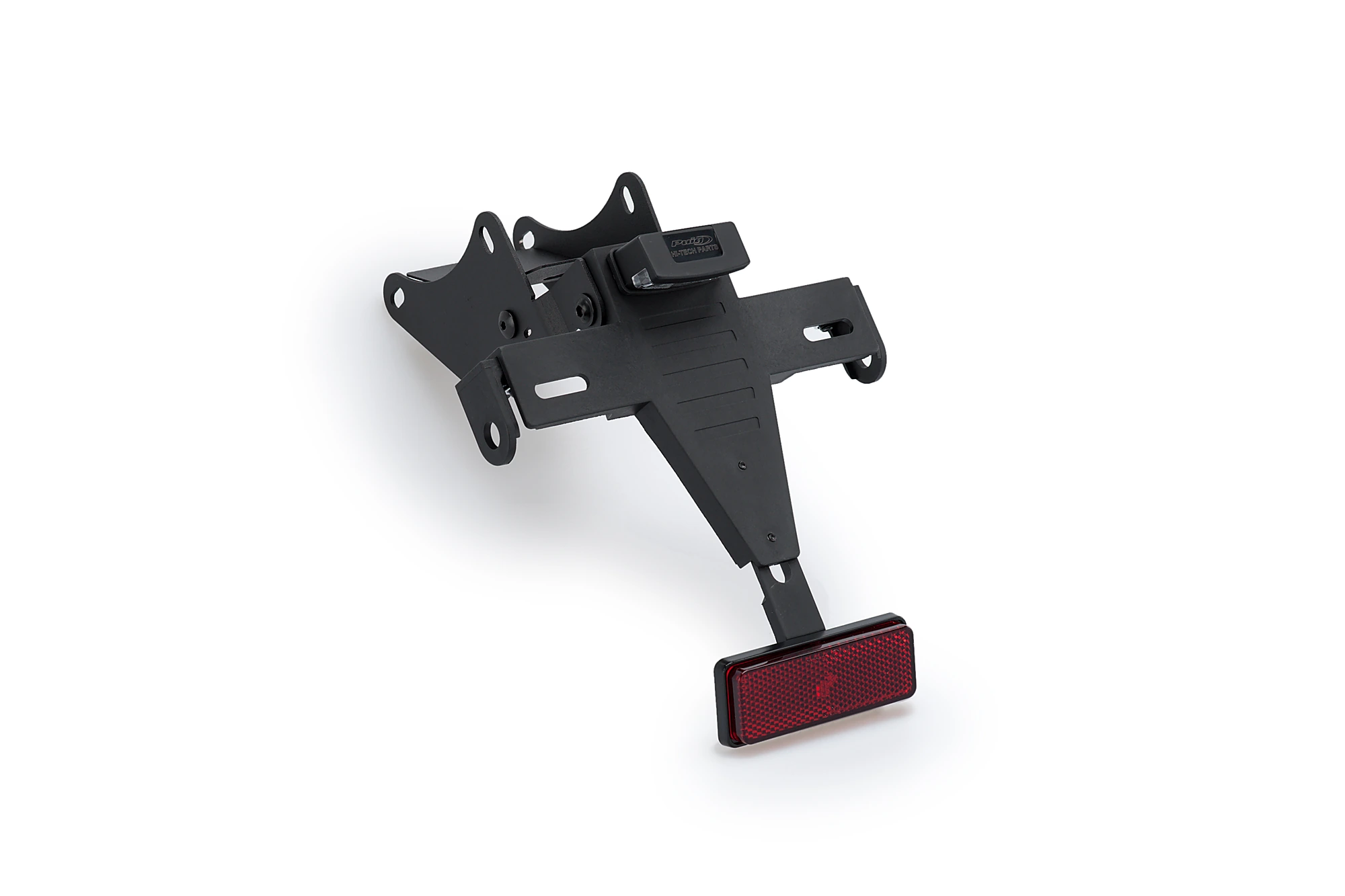Sustituye el portamatrículas original de tu moto por el soporte portamatrículas de Puig, que, gracias a su ubicación elevada, proporciona un aspecto deportivo a tu motocicleta. El conjunto combina piezas de acero con acabado en pintura epoxi y elementos de poliamida, logrando una notable reducción de peso en comparación con el soporte original.