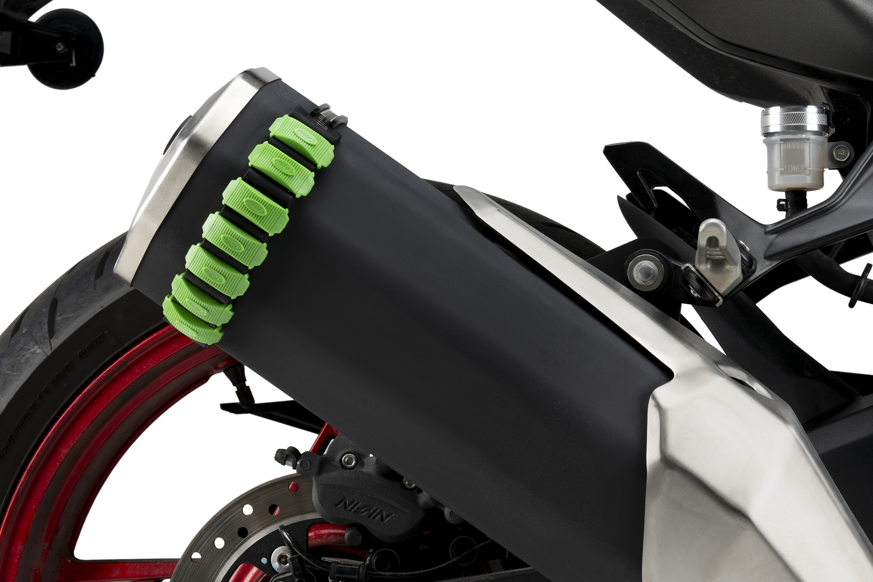 Este nuevo accesorio resulta muy práctico ya que protege una de las piezas de nuestras motos más expuestas en caso de caída y que tiene un elevado coste económico como es el tubo de escape.