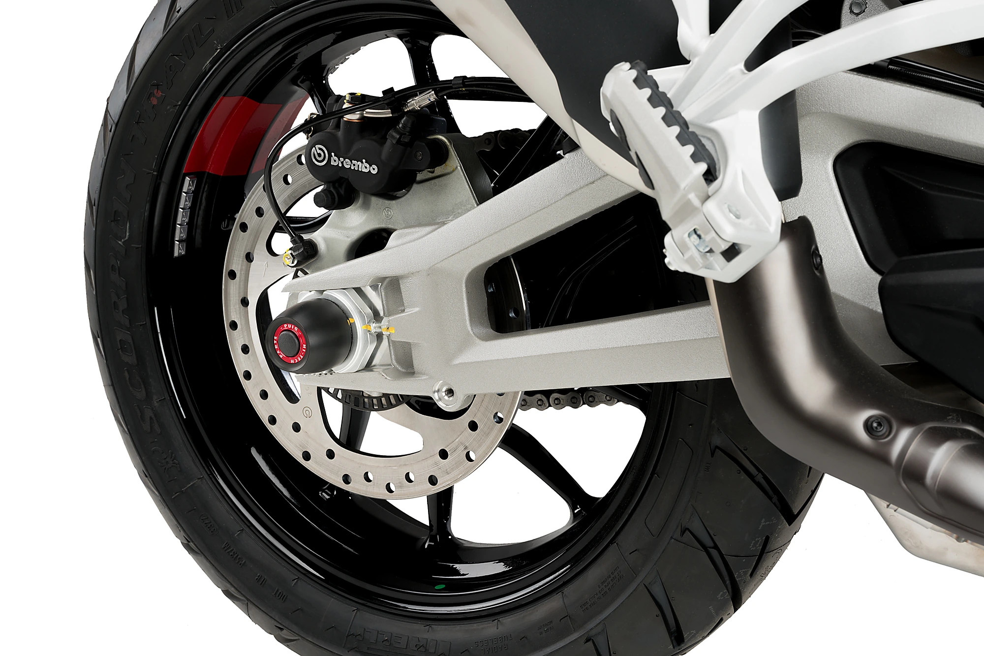 Junto al protector del basculante Puig sirve los tapones con acabado color negro.