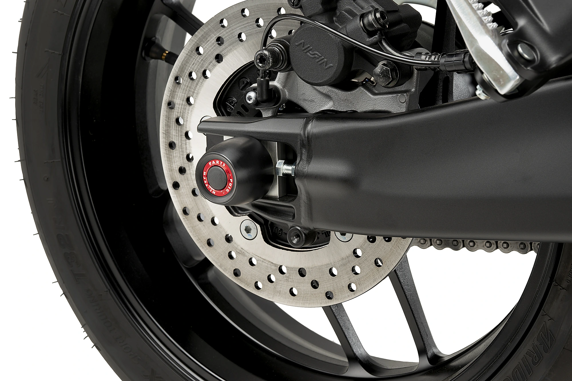 Junto al protector del basculante Puig sirve los tapones con acabado color negro.