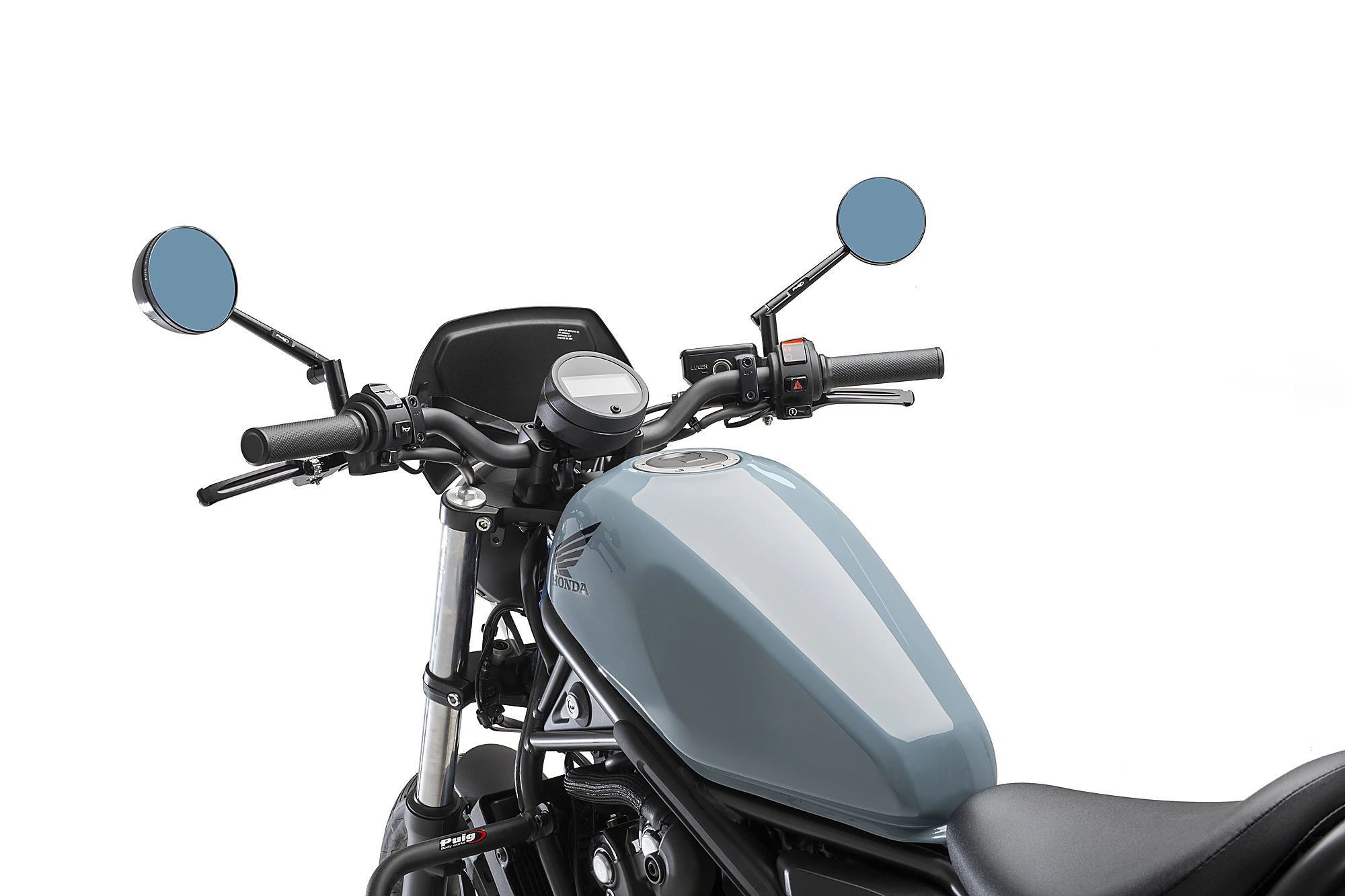 En Puig sabemos de la importancia que tiene la estética retro/vintage para nuestros usuarios, por ello lanzamos el nuevo retrovisor retro de Puig que potenciará la estética tan característica de tu vehículo. Además, le aportará la funcionalidad característica de la marca catalana ya que es regulable tanto en inclinación como en altura. El retrovisor Retro Puig está diseñado a imagen y semejanza de la parte delantera de los aviones para combatir las ráfagas de viento y mejorar la aerodinámica de tu moto. Cuenta con cristal antideslumbrante para garantizar la mejor conducción y seguridad sobre la moto.