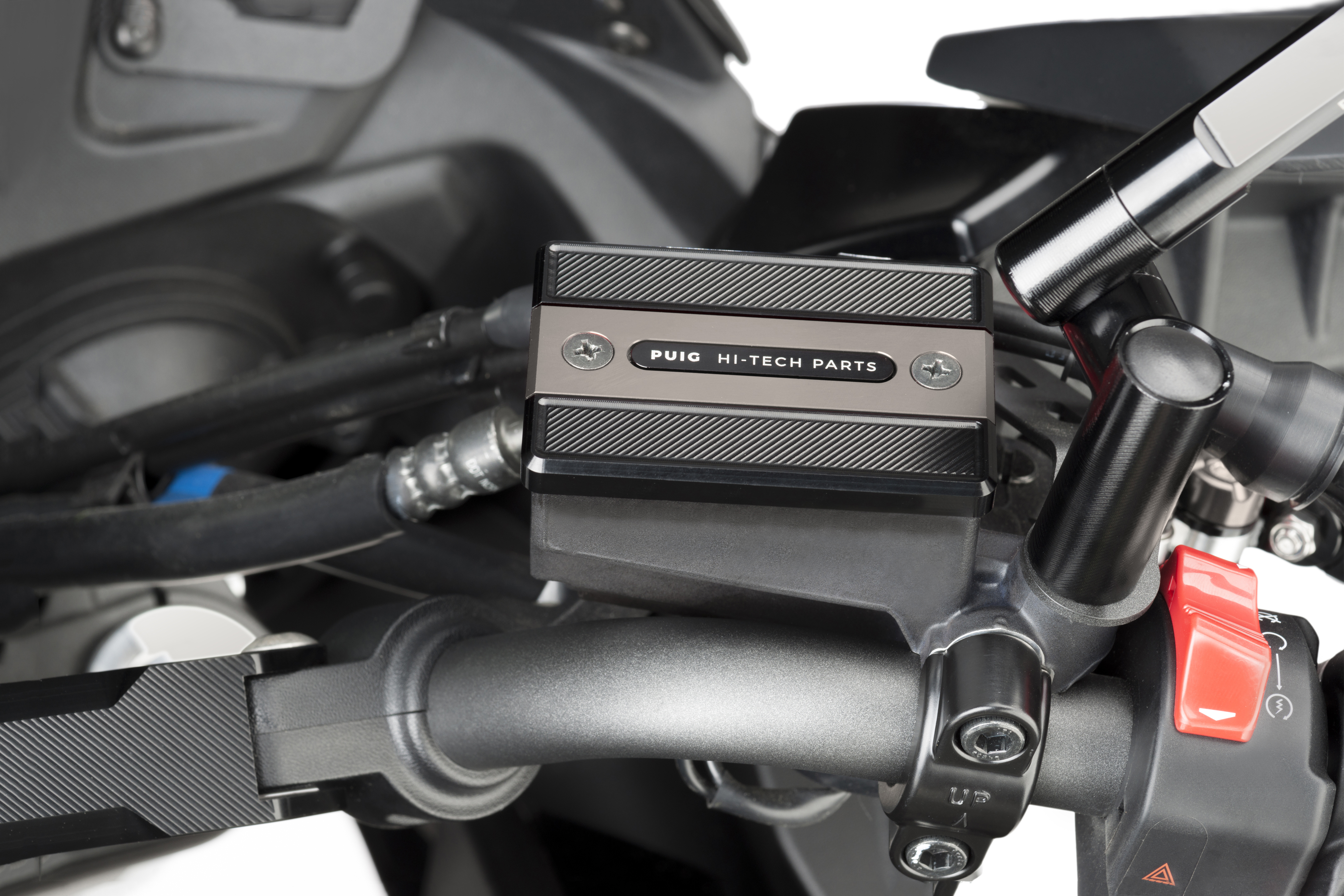 Haz de tu moto un vehículo exclusivo y mejora la parte estética de una pieza únicamente funcional de tu moto con el tapón para el depósito del líquido de freno Puig.