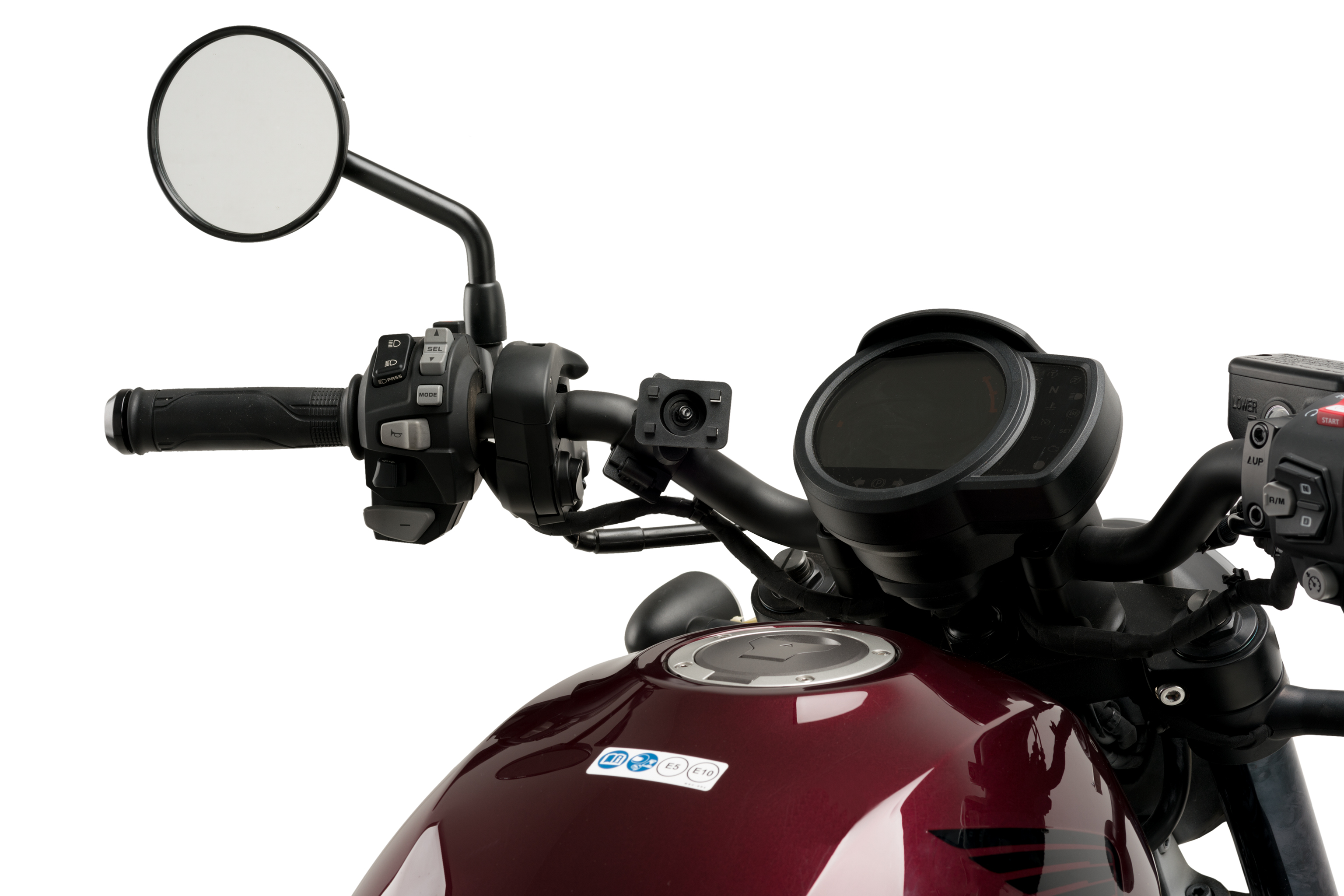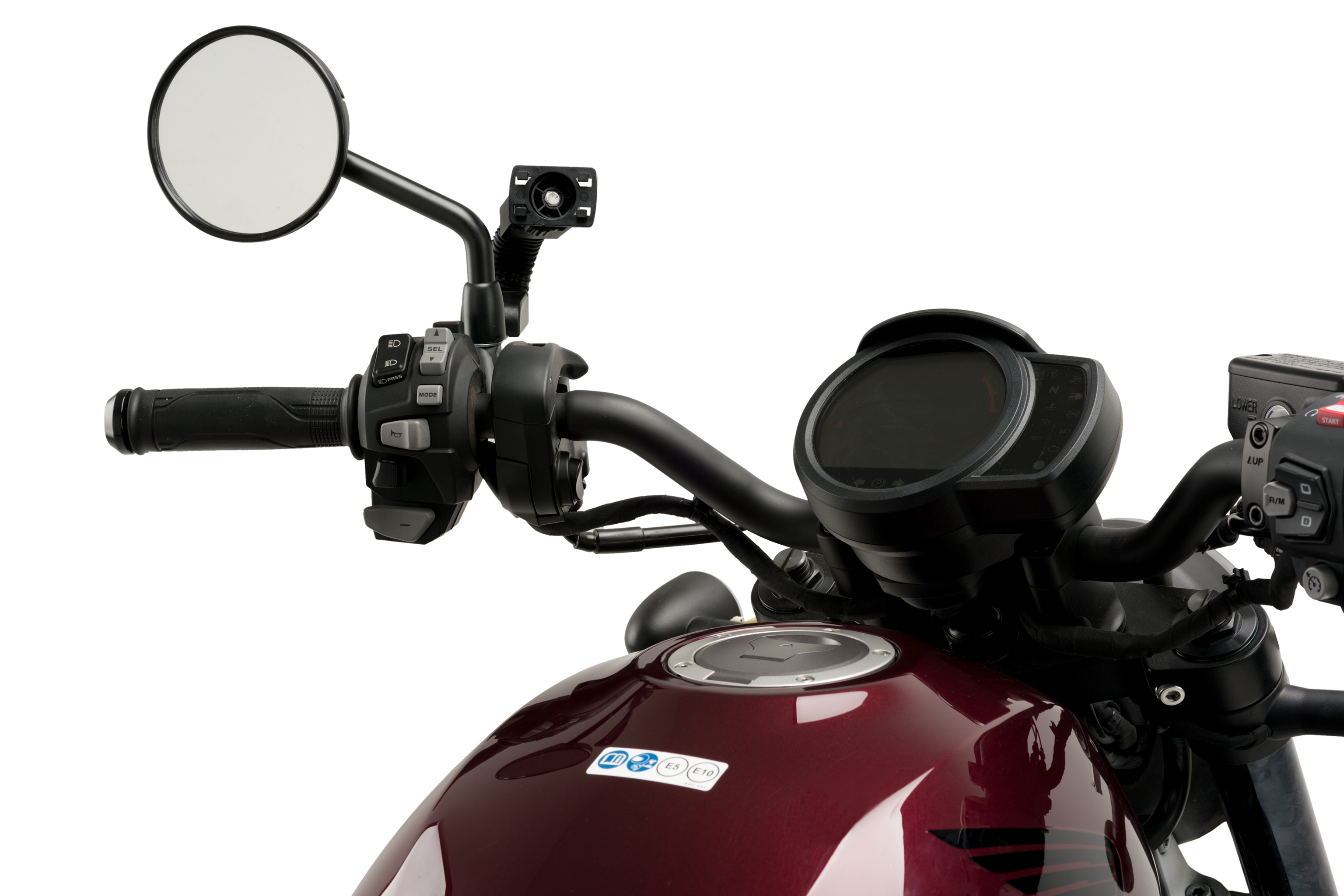 Puedes montar el portateléfono en la base del retrovisor, la varilla del retrovisor, en el manillar y en la tija de la moto donde quedará más inmovilizado frente a posibles impactos o baches de la carretera.