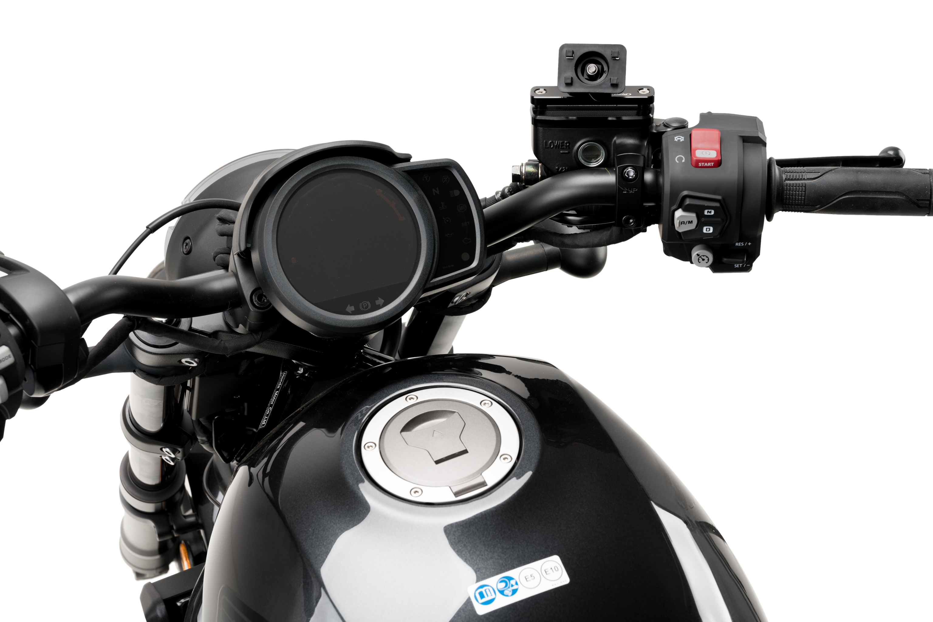 El portateléfono te permitirá integrar tu teléfono de forma cómoda y sin afectar a la visibilidad final de la carretera. El mecanismo de fijación se adapta a las pulgadas de los teléfonos actuales. La zona acolchada de los laterales y la parte trasera, donde se apoya, mejora su agarre e impide la vibración que podría afectar a su sistema operativo.