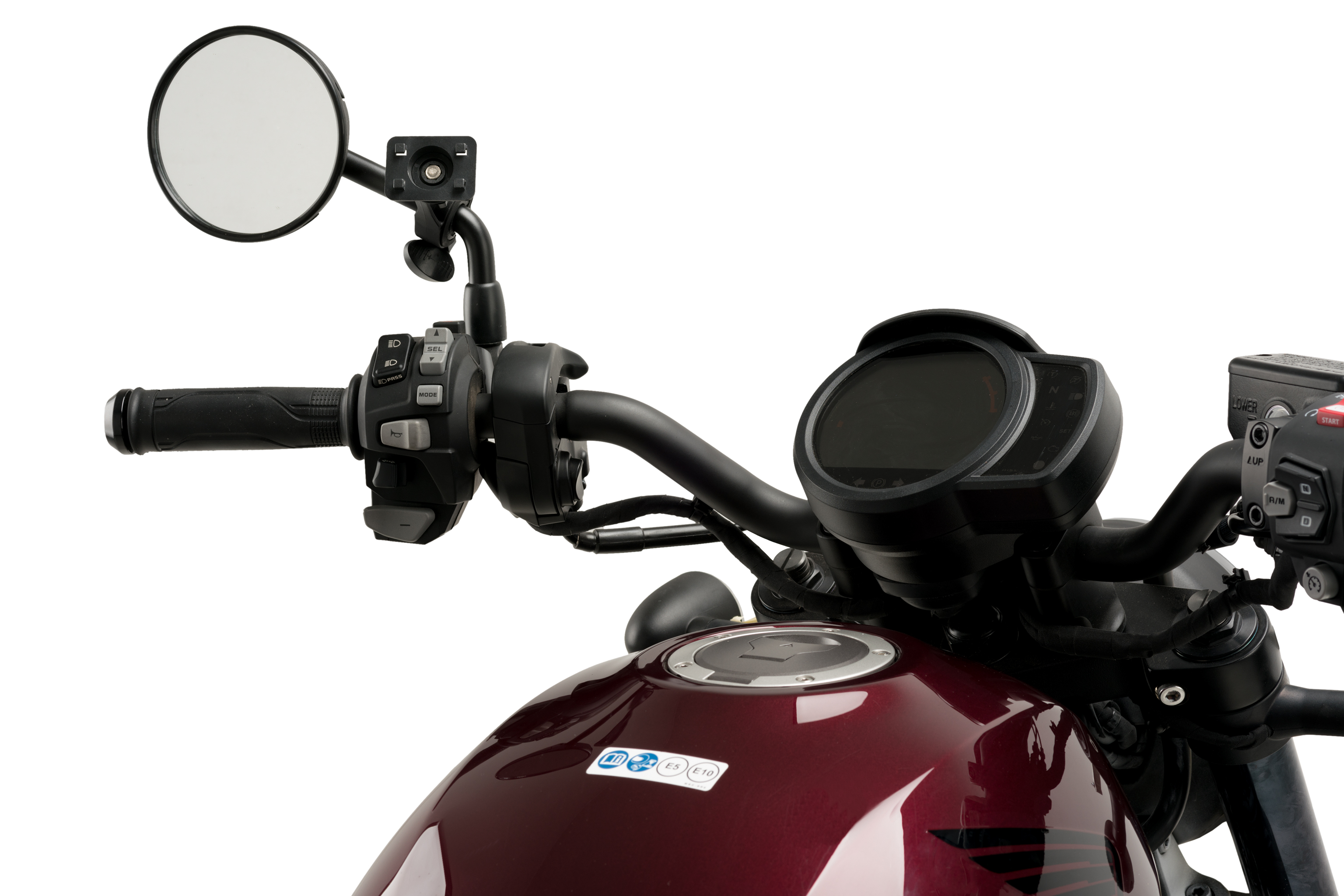 Puedes montar el portateléfono en la base del retrovisor, la varilla del retrovisor, en el manillar y en la tija de la moto donde quedará más inmovilizado frente a posibles impactos o baches de la carretera.