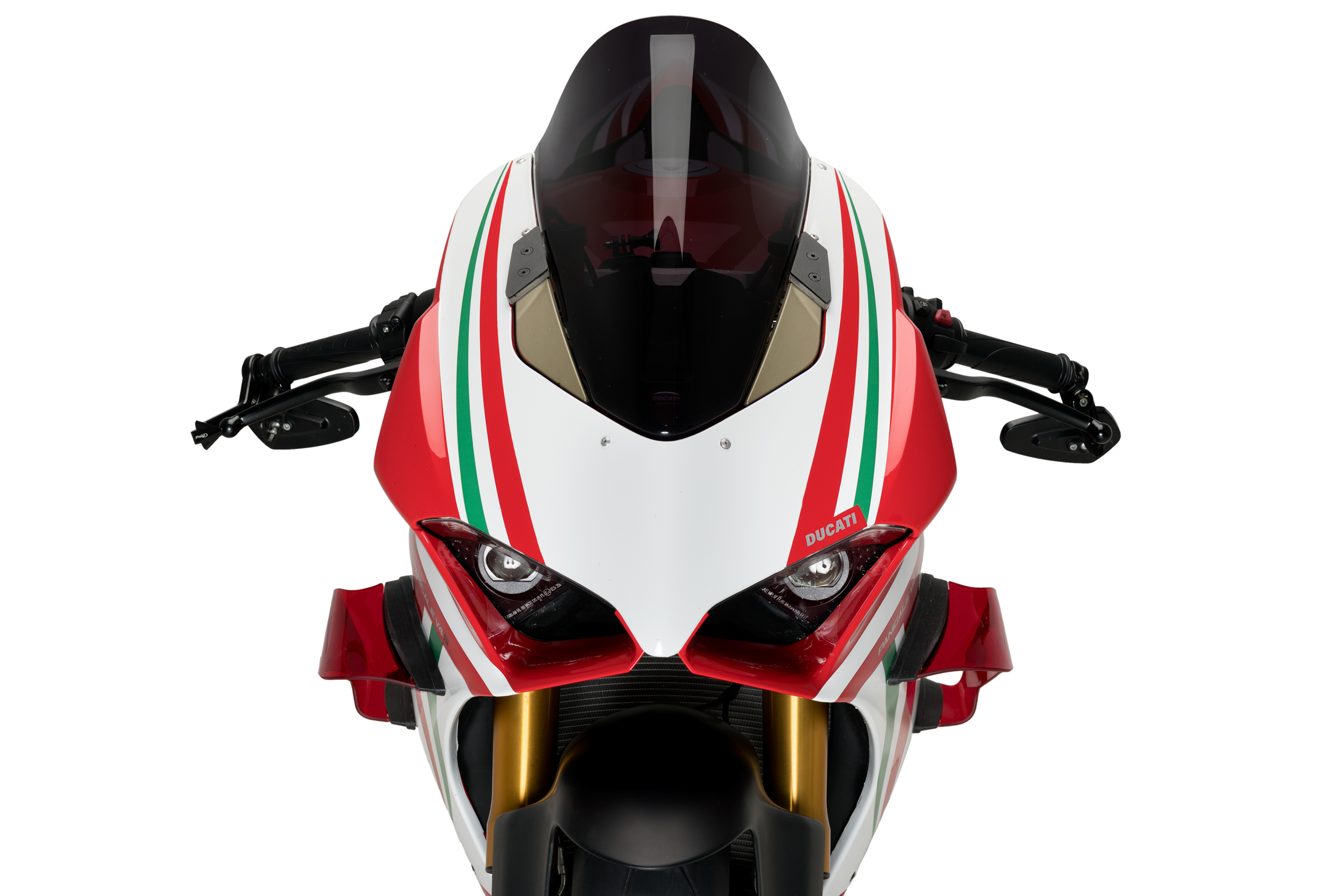 Grâce aux tests aérodynamiques virtuels et à l'expérience en Moto GP, la technologie aérodynamique des ailerons s'ajoute à l'effet "anti-guidonnage" dans les fortes accélérations, jouant avec la canalisation de l'air et la pression qu'il exerce vers le sol. Son design est spécifiquement conçu pour produire ces effets, mais aussi dans l'esthétique de votre moto de sport. Dans cet objectif, ils seront disponibles en noir brillant, rouge transparent et fumé foncé afin que vous puissiez adapter celui qui convient le mieux à votre style.