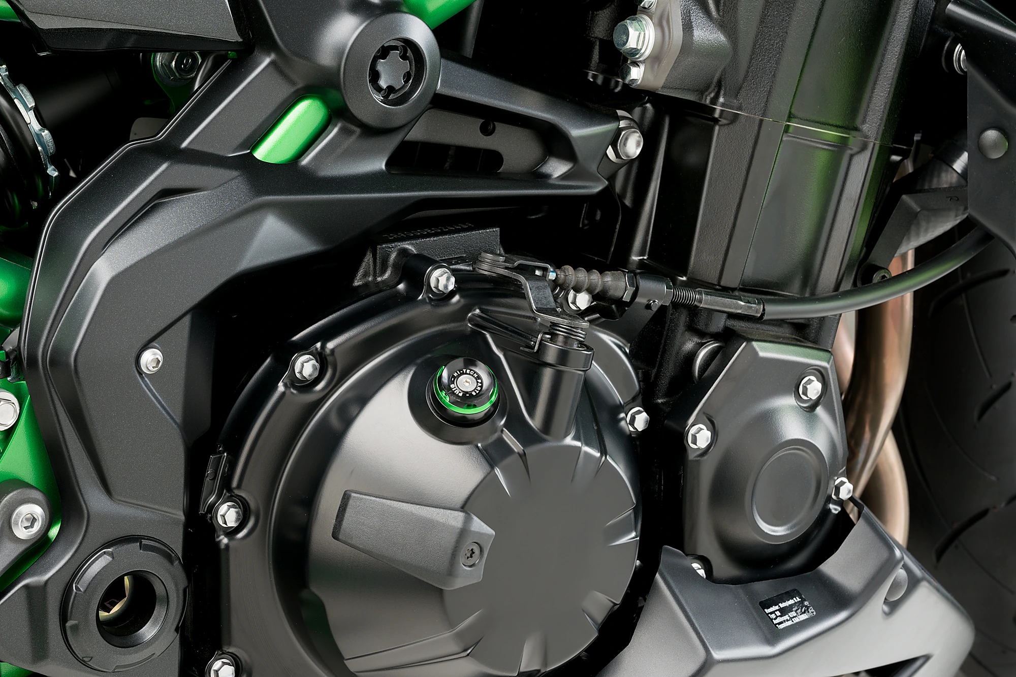 D'une pièce d'origine purement fonctionnelle à une pièce design qui se démarque dans l'assemblage du moteur. Le caractère racing marqué, de par ses dimensions réduites et ses lignes d'usinage, s'associe à l'élégance d'un ensemble anodisé noir et d'une bague colorée qui lui permet de se fondre dans le reste de la moto.