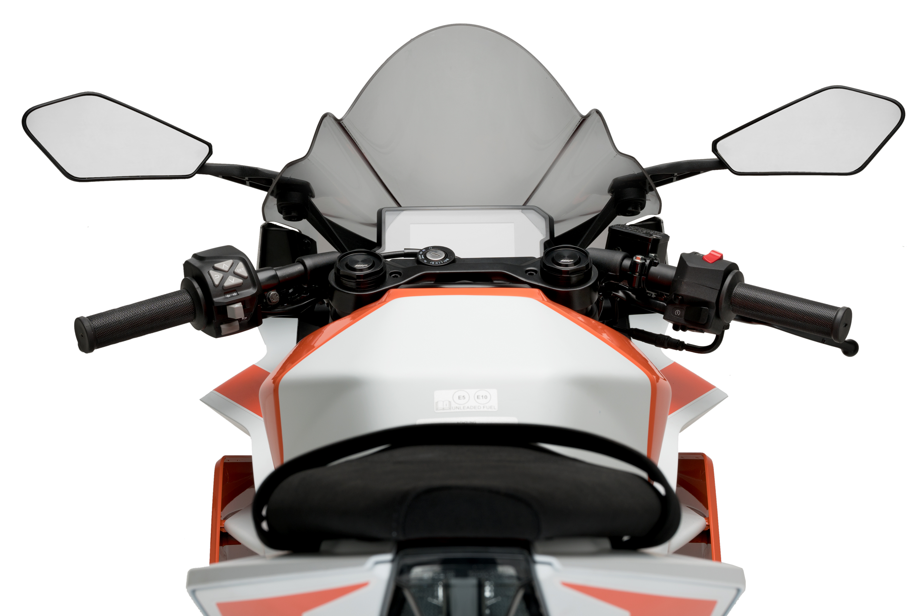 Avec des mesures globales de 525 mm de haut sur 420 mm de large, la bulle Z-Racing de Puig est 30 mm plus haute que le pare-brise KTM d'origine.