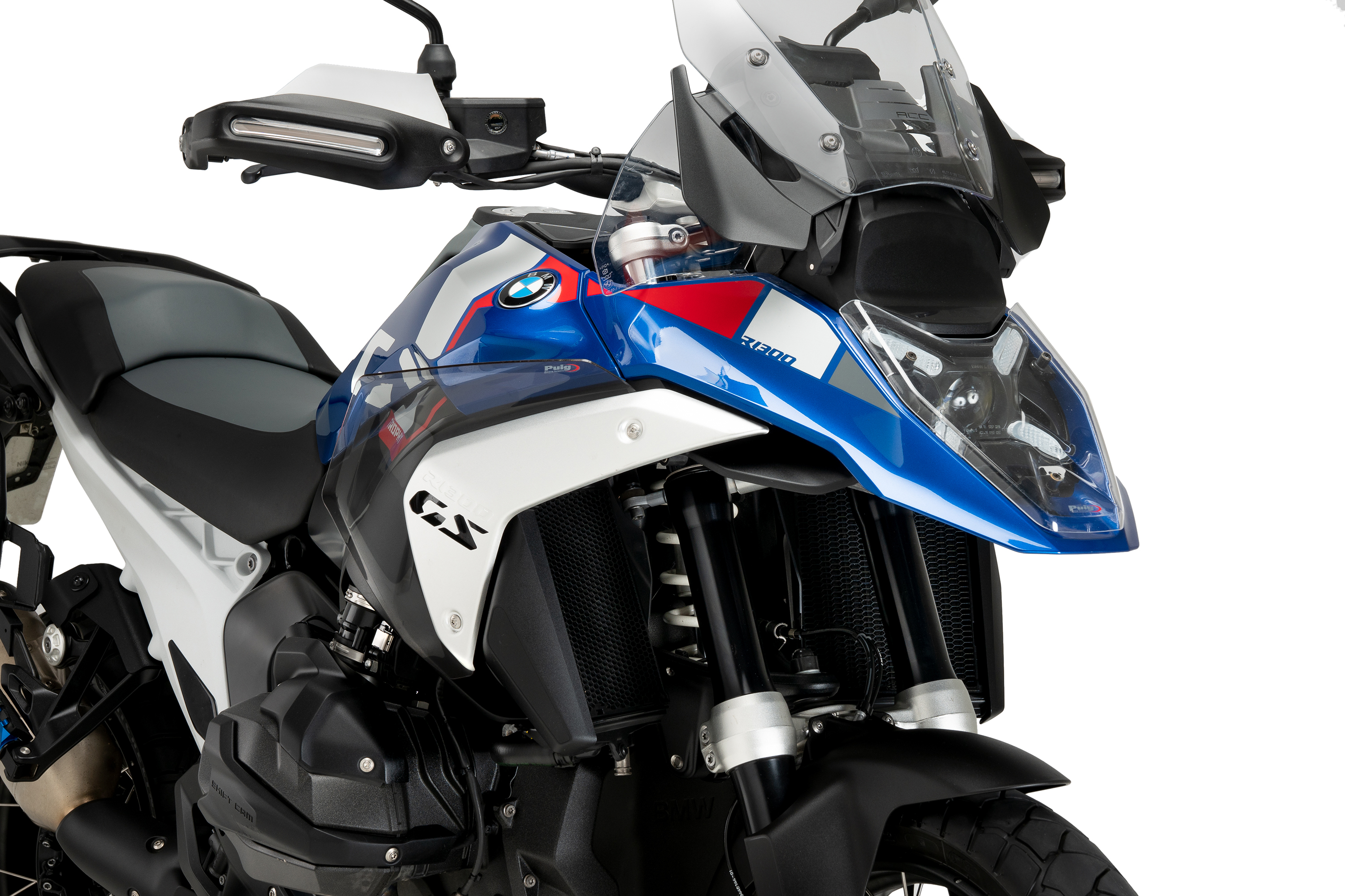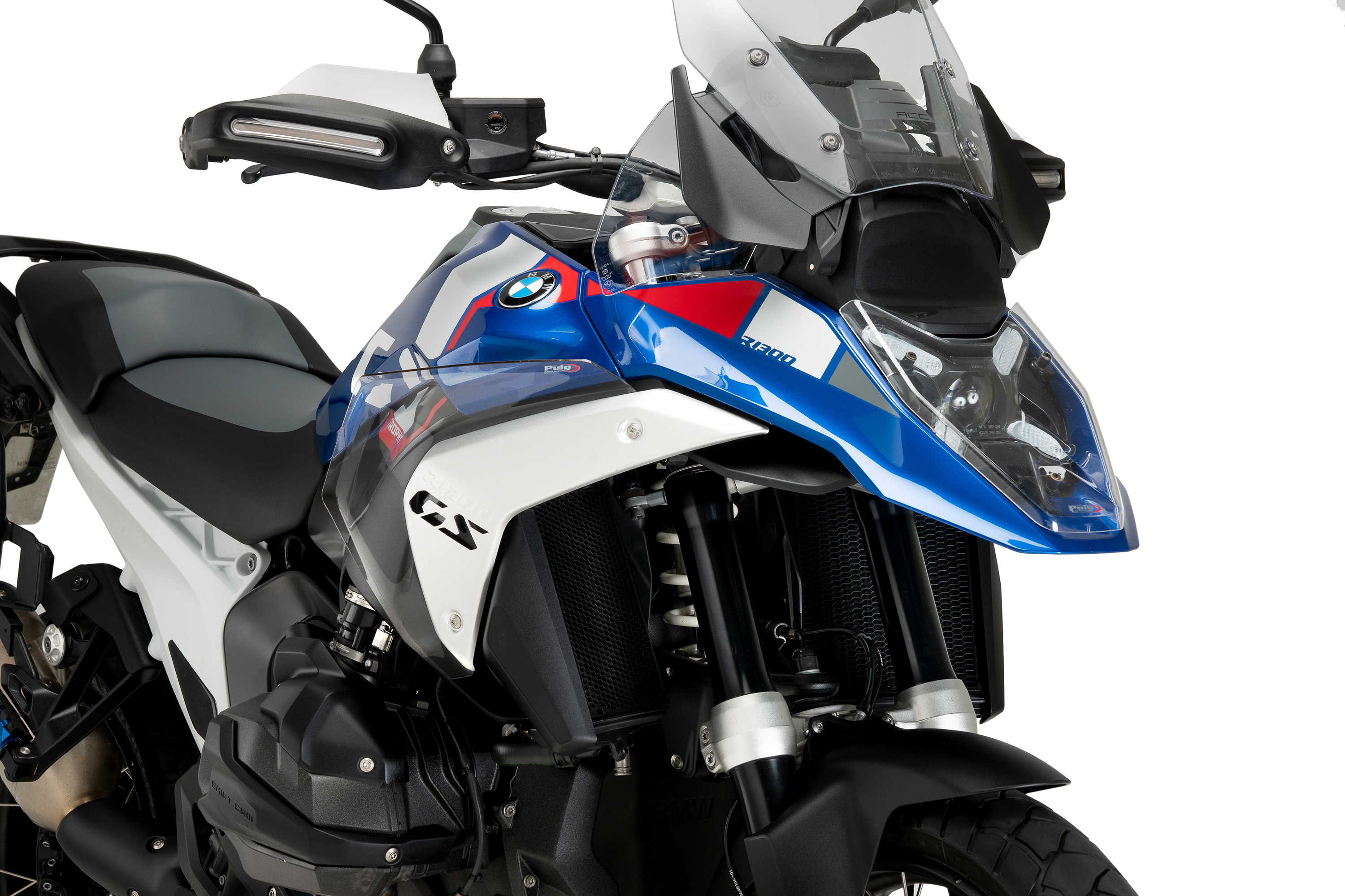 Les déflecteurs inférieurs sont compatibles avec les protège-mains d'origine et les extensions de protège-mains Puig, ainsi qu'avec tous les pare-brise Puig conçus pour la BMW R1300GS.