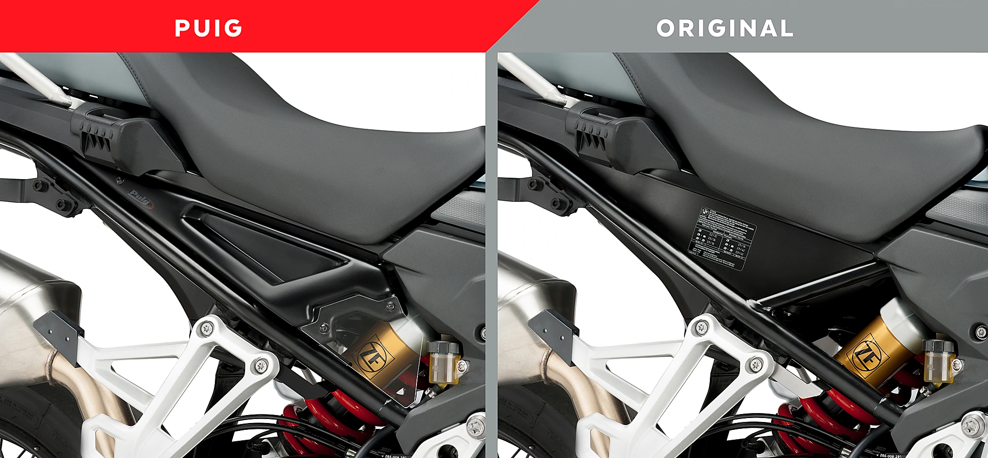Les caches latéraux Puig ont été conçus pour recouvrir les parties creuses de la moto en les protégeant des éclaboussures et des salissures durant  la conduite et sur toutes sortes de pistes.