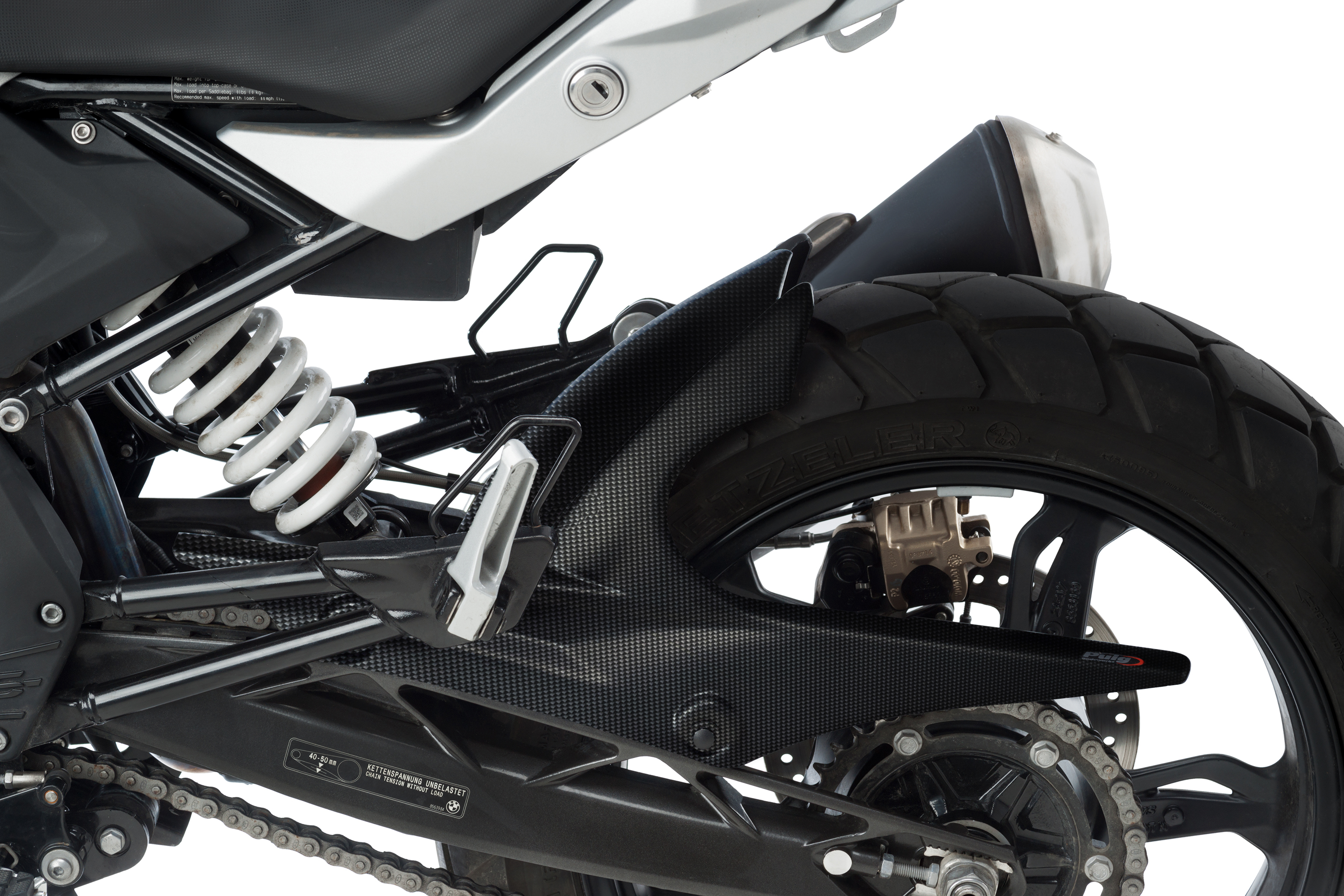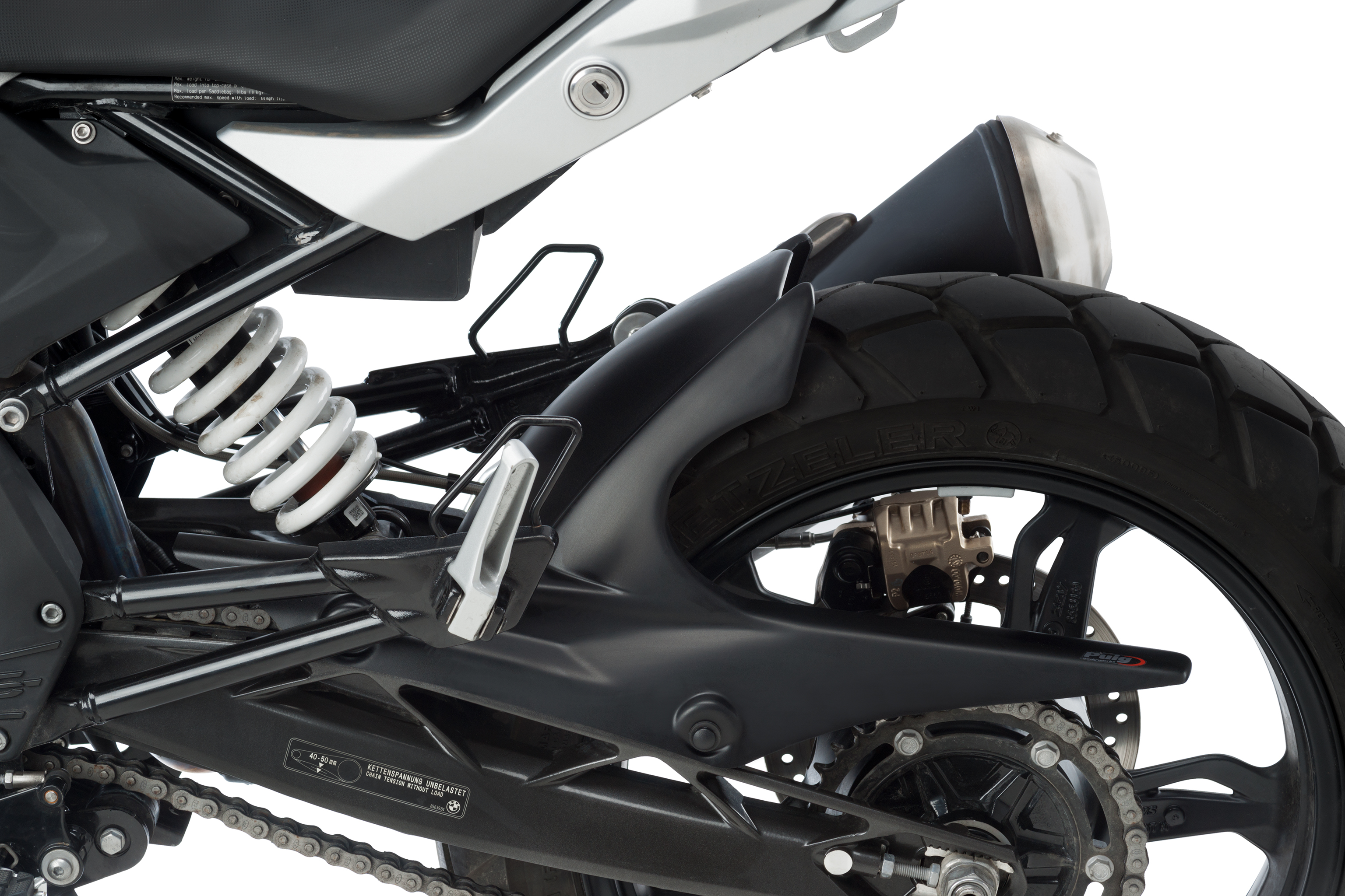Dans ce cas, Puig donne la possibilité de choisir entre trois modèles différents de garde-boue pour personnaliser la moto à volonté. Garde-boue « S », idéal pour les modèles naked; Type de garde-boue arrière « R », et « S avec support aluminium » au design frappant avec des supports fixés  au bras oscillant de la moto, en particulier pour les modèles type Crosstourer.