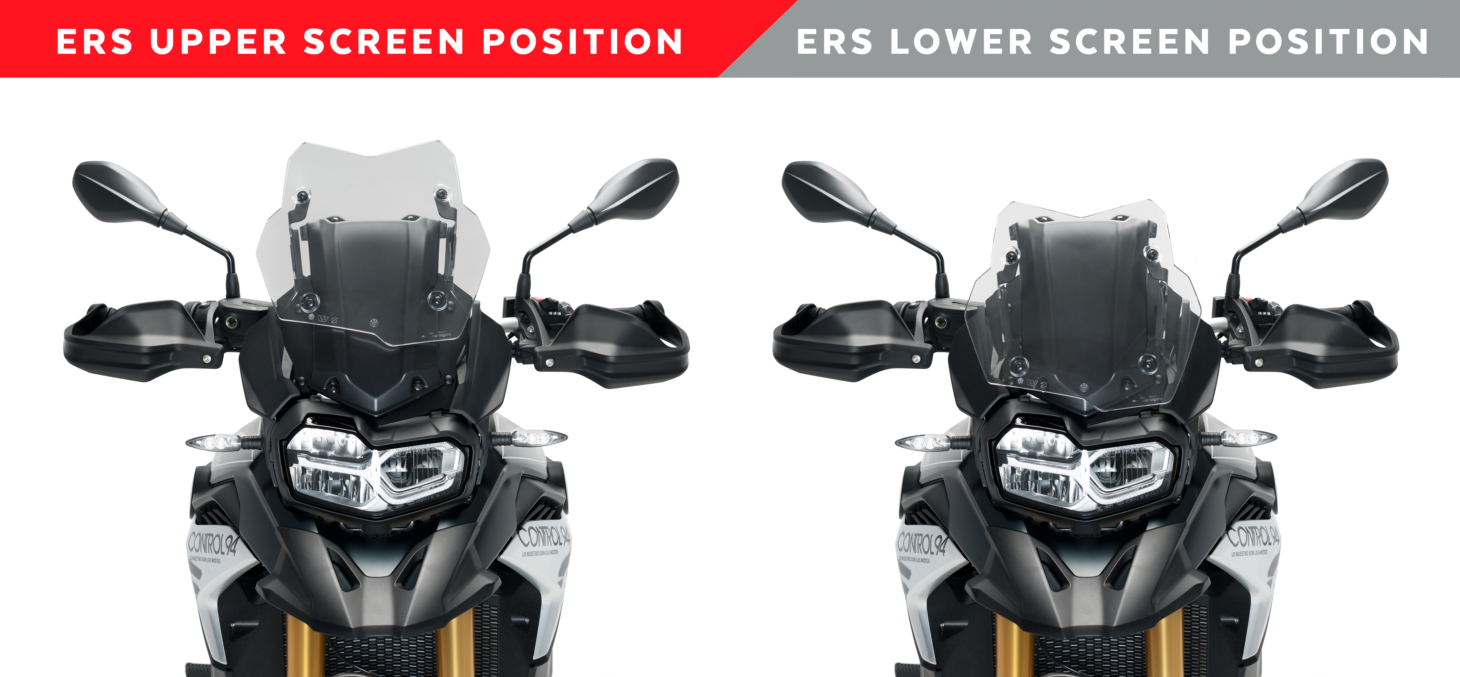Le E.R.S. (Electronic Regulation System) est un mécanisme plug & play qui vous offre la possibilité de modifier la hauteur de l'écran de votre BMW F750 / 850 GS de 150 mm pour les moments où vous avez besoin d'une protection élevée comme sur les autoroutes ou les conditions météorologiques défavorables, Ou, à l'inverse, diminuez cette hauteur en dessous de celle d'origine pour la conduite en ville ou tout terrain.