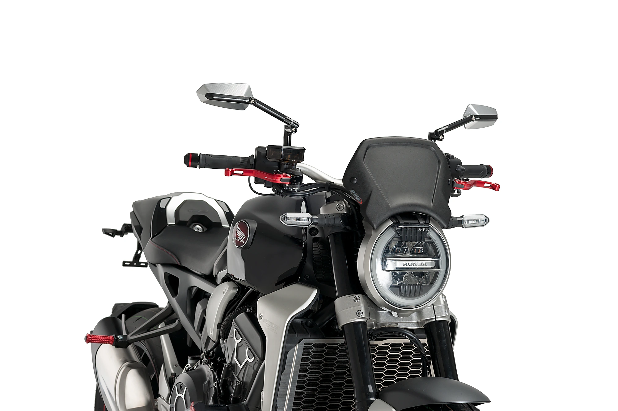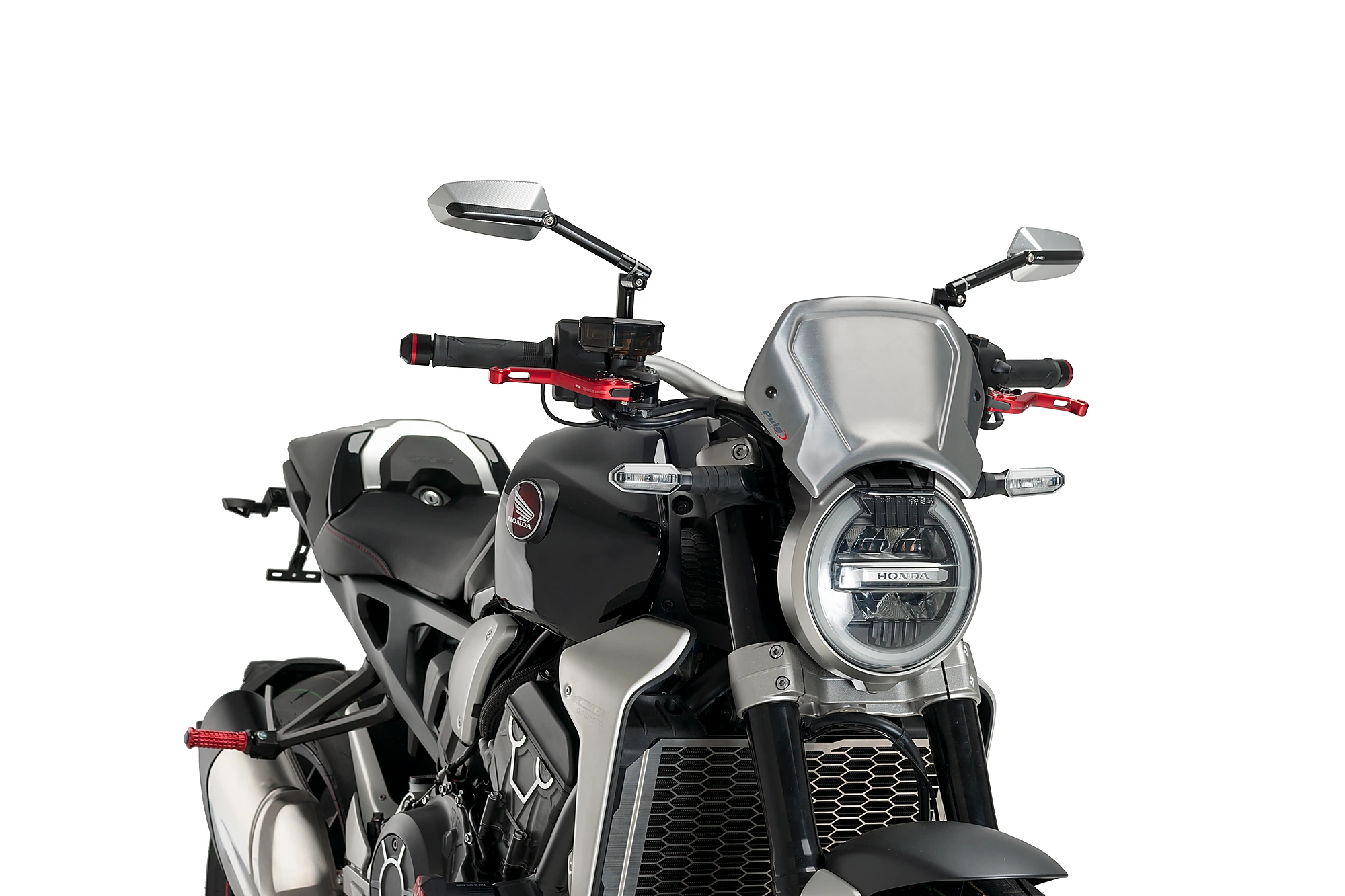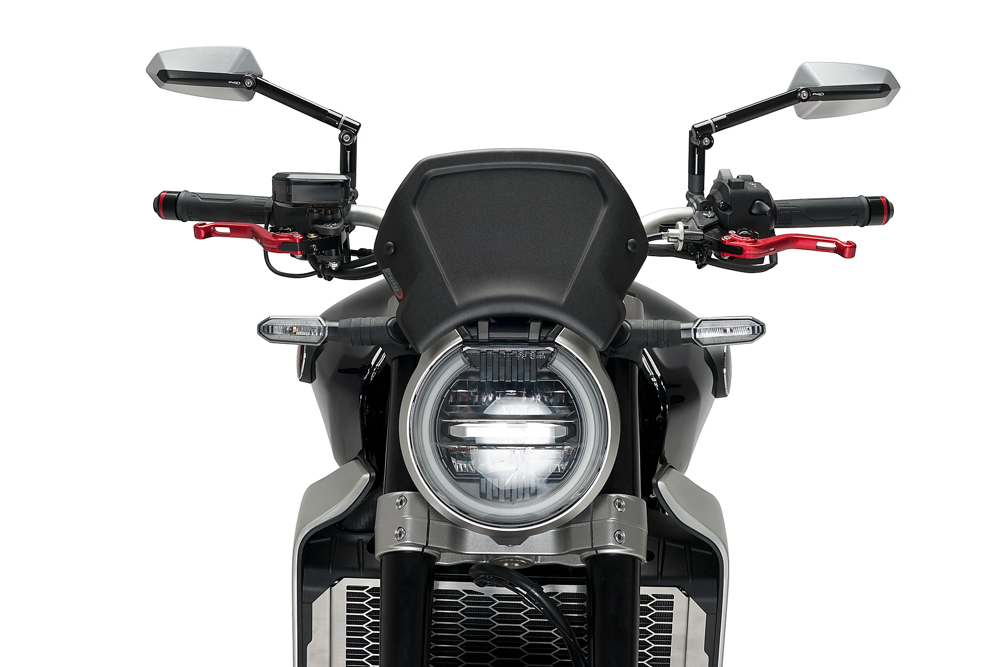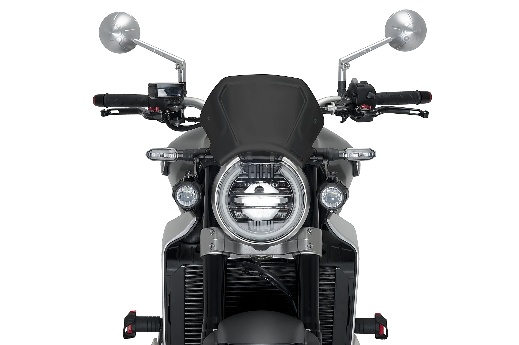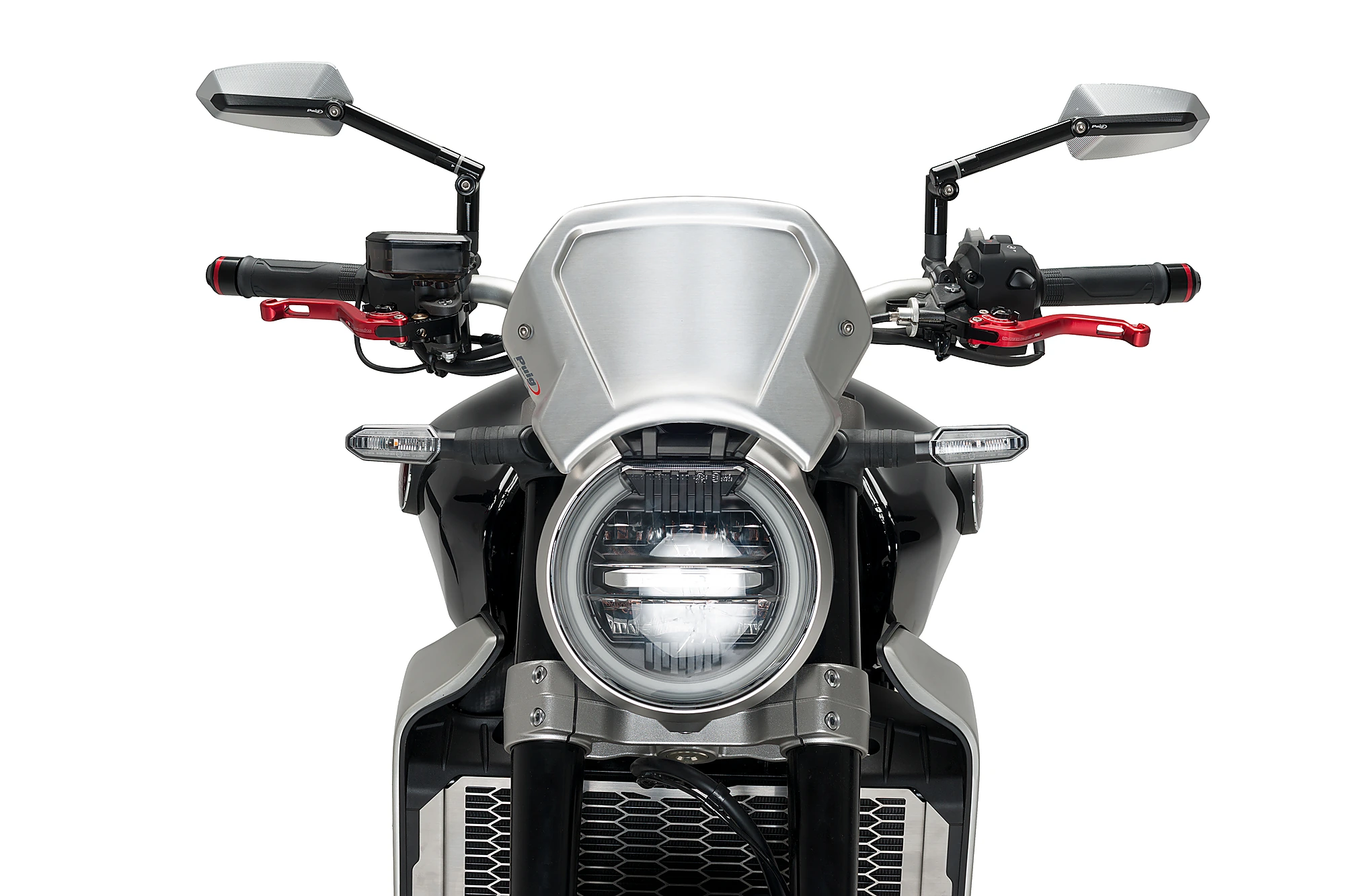 En ce qui concerne le montage, la plaque frontale en aluminium Puig est dotée de deux points d’ancrage et d’un support métallique universel. Puig dispose également de supports spécifiques si vous en avez besoin pour votre modèle de moto.