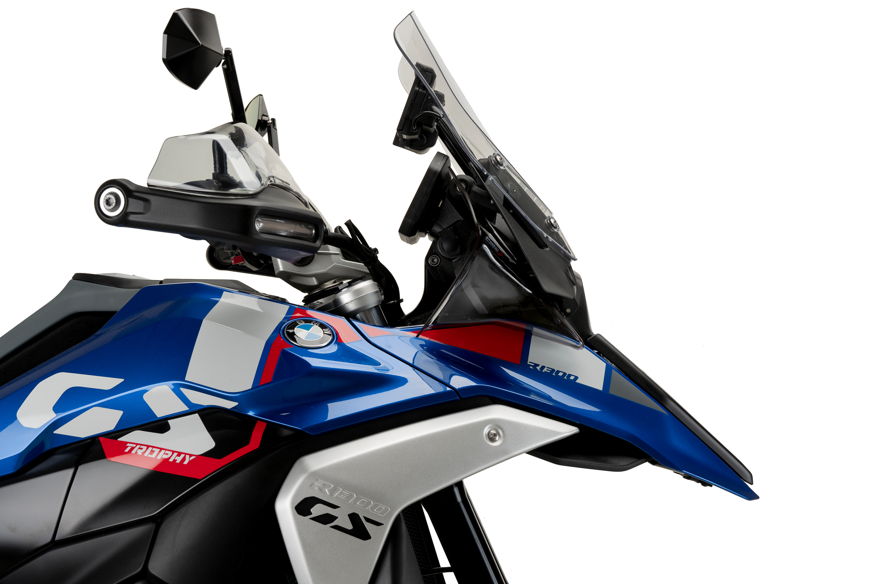 Protège-phare transparent spécialement conçu pour renforcer la protection du phare avant de la BMW R1300GS (compatible avec toutes les versions). Il se distingue par son nouveau système de montage qui s'adapte parfaitement aux formes de la moto, le rendant presque invisible, sans affecter le design ou la capacité d'éclairage de la dernière évolution du maxitrail allemand.