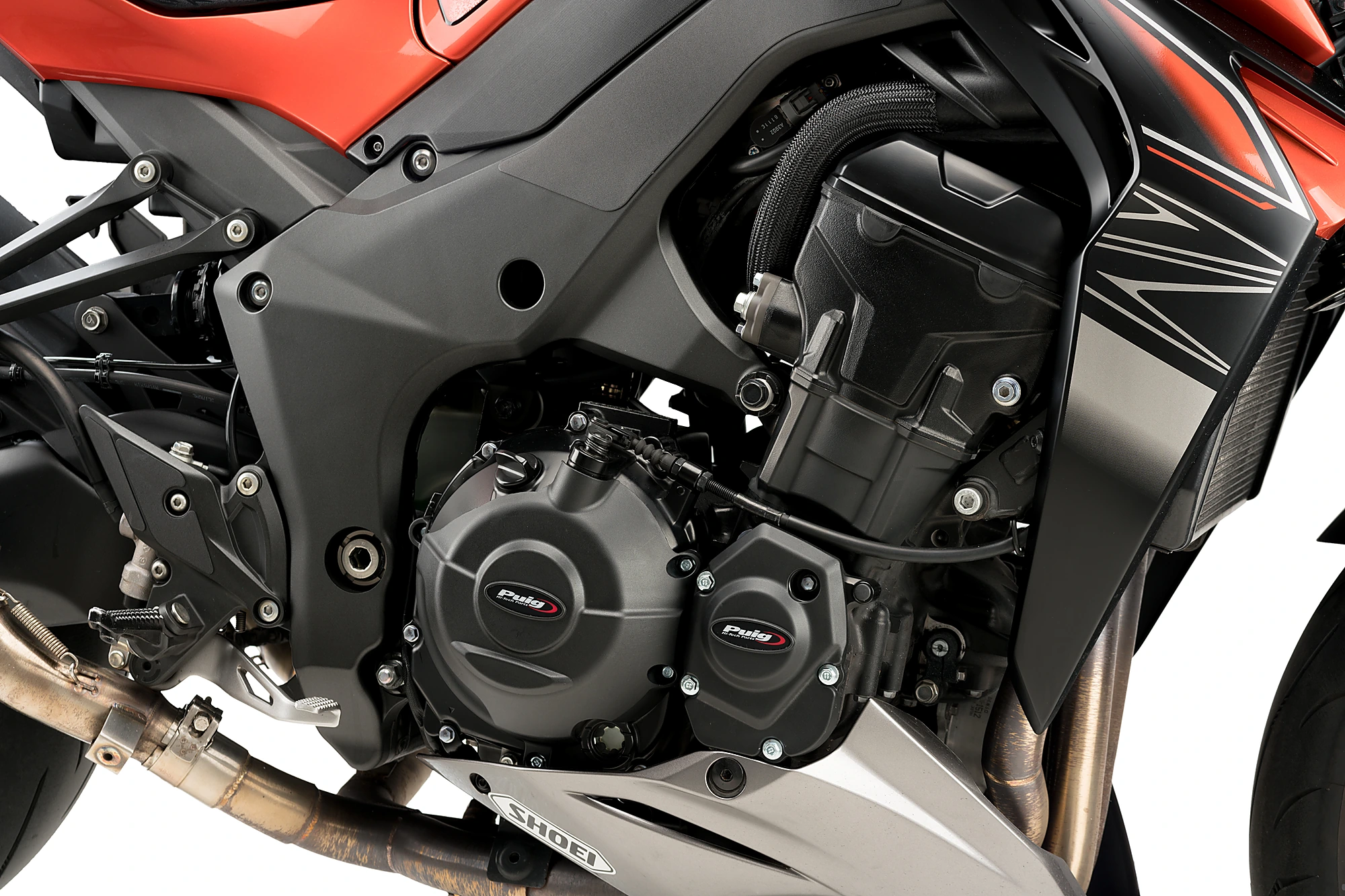 Afin de préserver l'esthétique de la moto, la  protection peut être achetée en finition mate et s’adapte au véhicule en la vissant sur le carter du moteur lui-même.