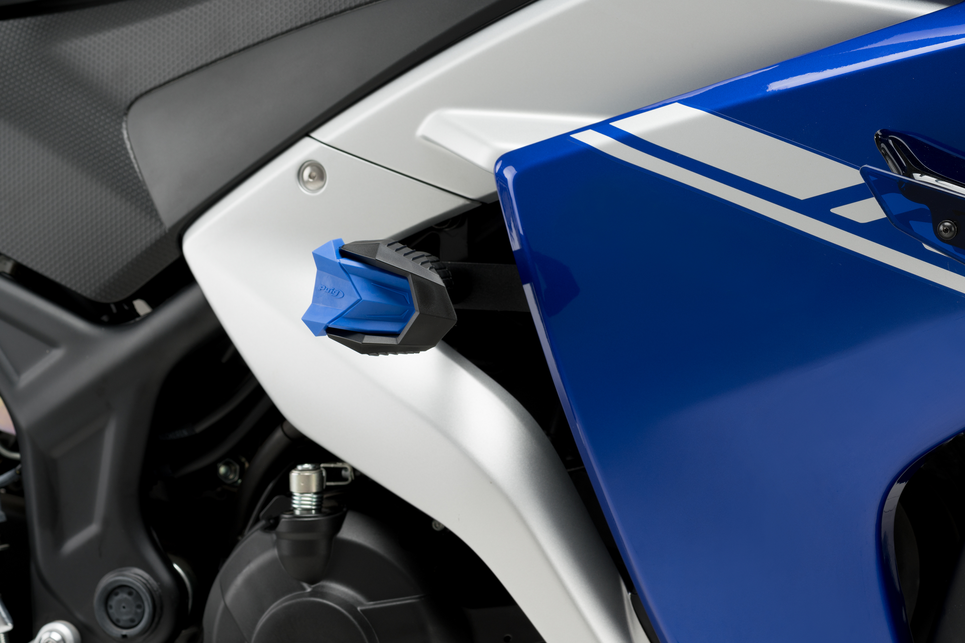 La protection est fournie avec une gomme de  caoutchouc grise par défaut, mais Puig propose une grande variété de couleurs pour s’ adapter parfaitement l'image de votre moto. En plus des pièces de rechange pour le caoutchouc, Puig propose également des pièces de rechange pour les crash pads en nylon.