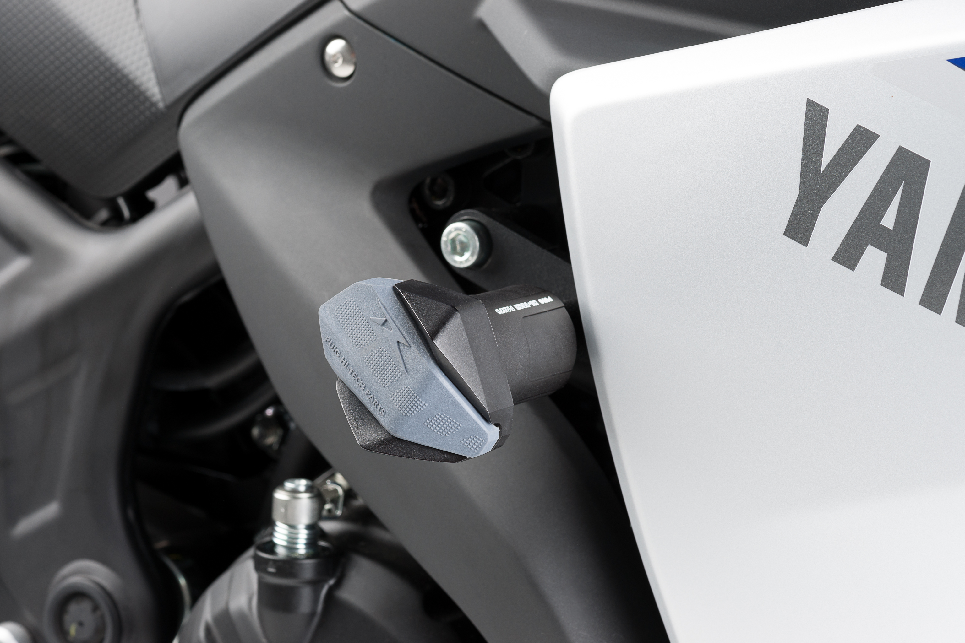 Ce sont des crash pads en nylon soigneusement conçus qui s’intègrent parfaitement à la ligne esthétique de votre moto, dans le respect des mesures, car ils ne dépassent pas du guidon et ne  touchent pas avant les repose-pieds.