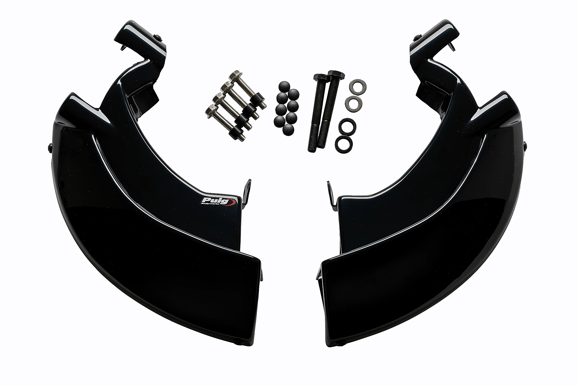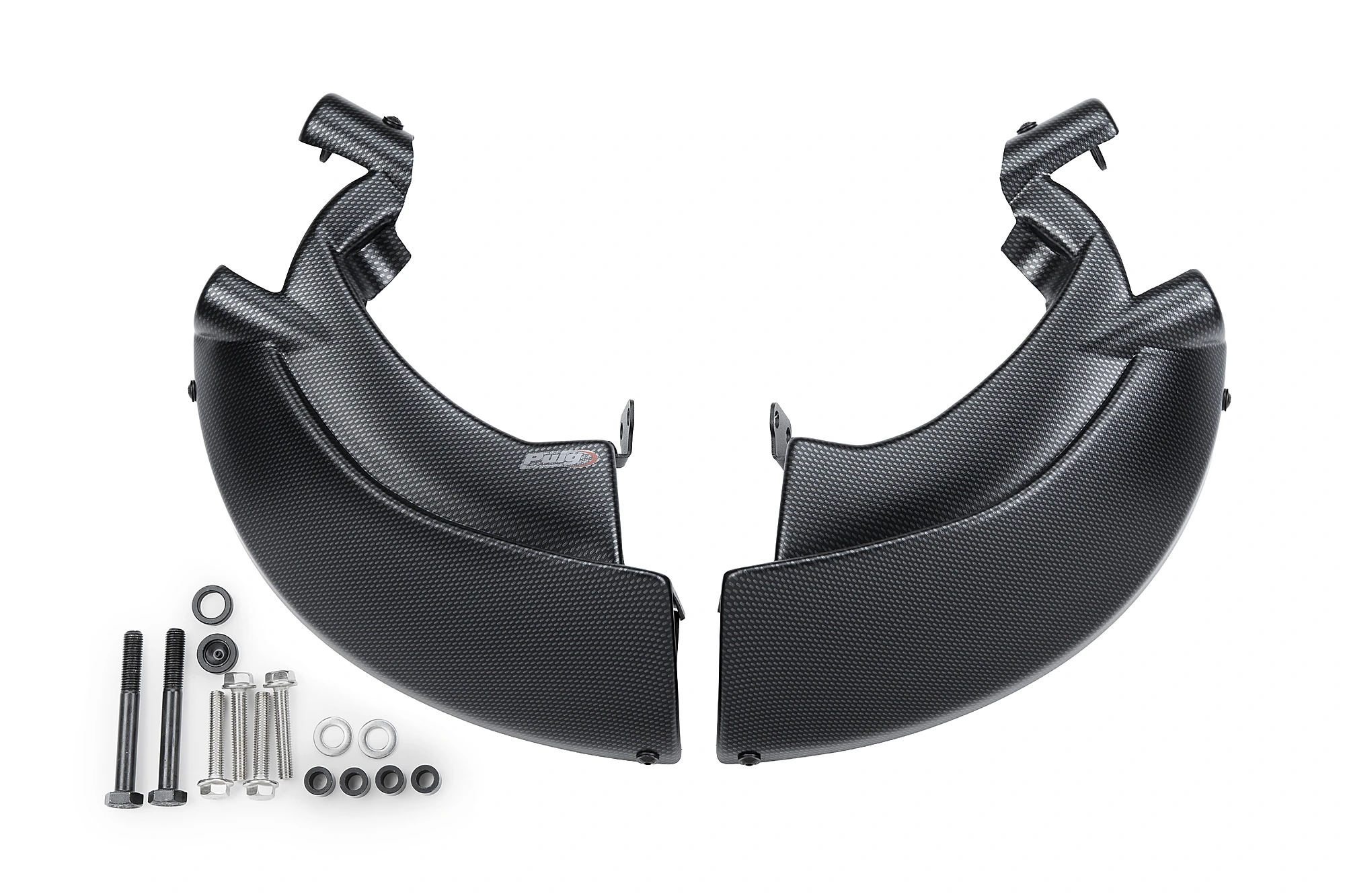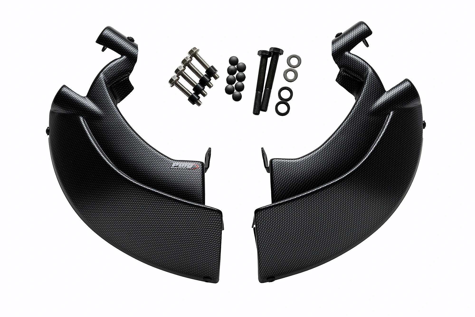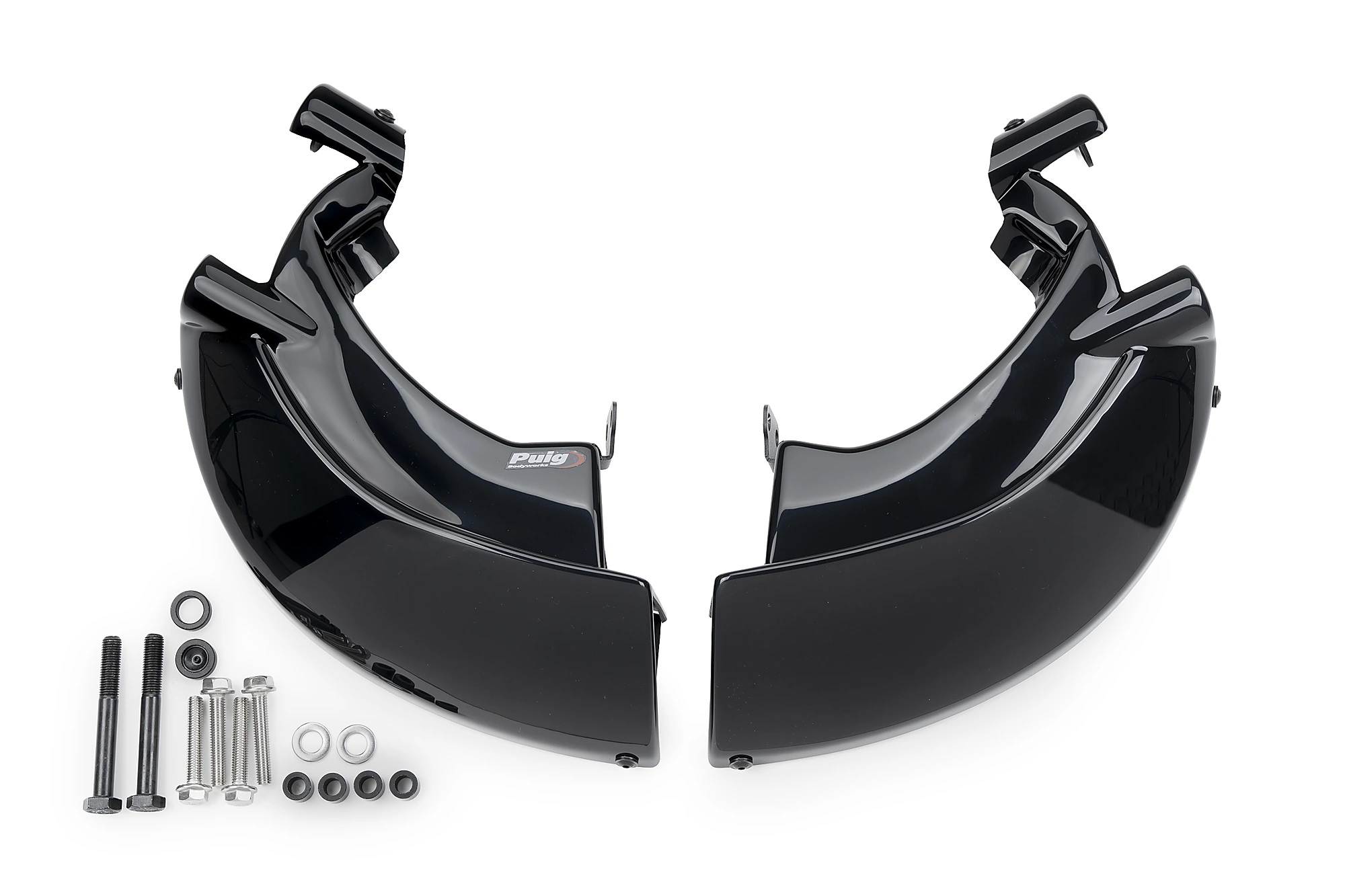 Leur design étudié, en plus d'offrir une esthétique plus sportive et personnalisée, élimine les turbulences au niveau de la roue avant en créant une couverture lenticulaire partielle qui favorise l'aérodynamisme de la moto, notamment à grande vitesse. Comprend des supports en aluminium robustes et légers finis en noir texturé discret.