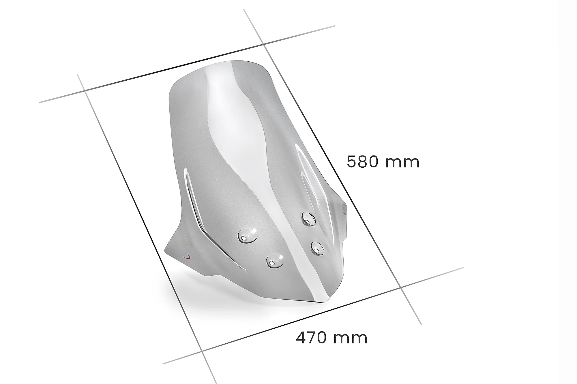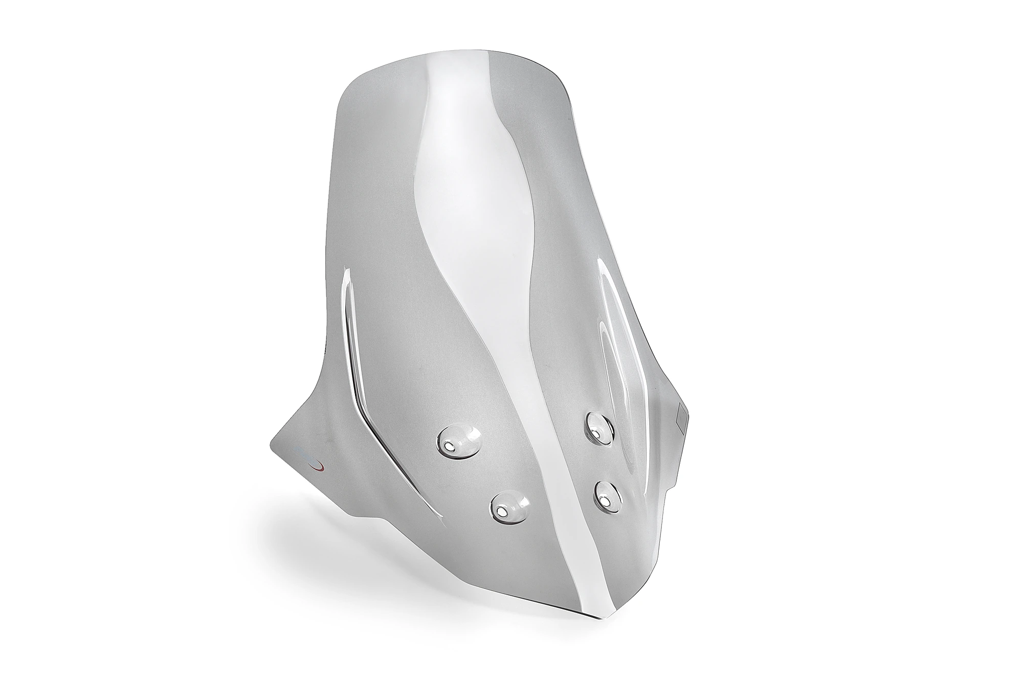 Conçue et fabriquée à Barcelone par les experts en aérodynamique de Puig et utilisant les technologies les plus avancées, la bulle V-Tech Touring est réalisée en matériau acrylique de haute qualité d'une épaisseur de 4 mm avec une transparence maximale.