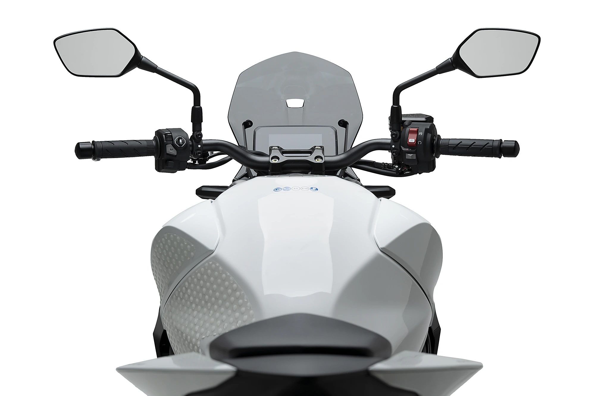 Inspirée de l’aérodynamique des avions de chasse, son design allie fonctionnalité et caractère. La surface supérieure canalise le flux d’air frontal, le déviant vers des zones moins sensibles du corps du pilote, réduisant ainsi notablement la fatigue en conduite.