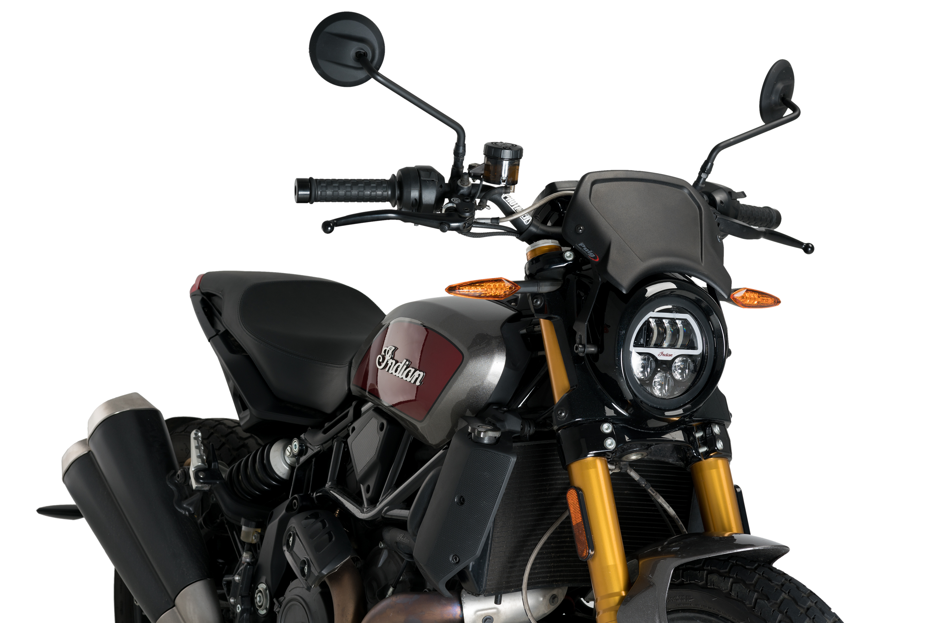 Per quanto riguarda il montaggio, la carenatura frontale in alluminio Puig ha due punti di ancoraggio e un supporto di ferro universale. PUIG ha anche supporti specifici se ne avete bisogno per il vostro modello di moto.