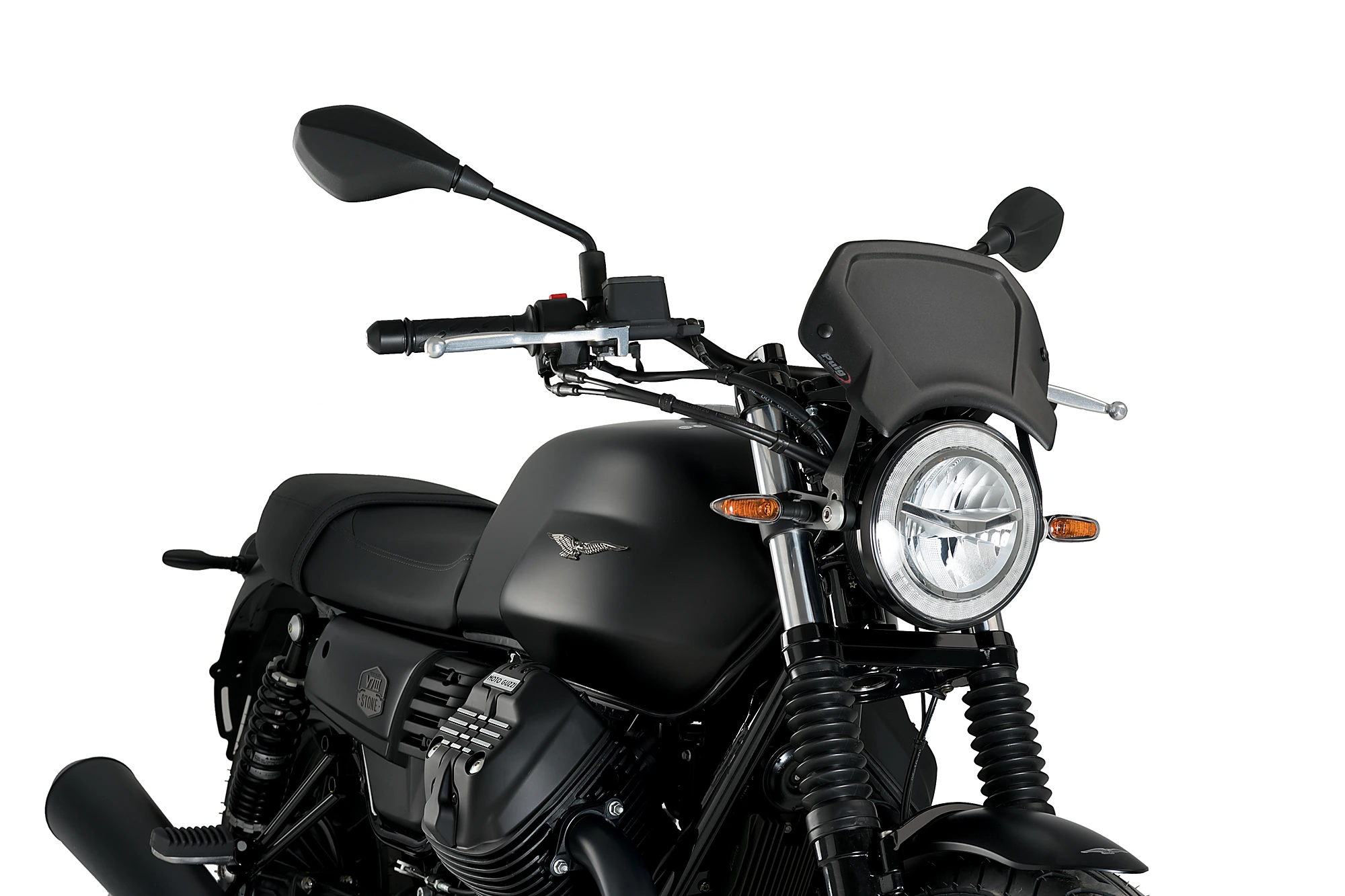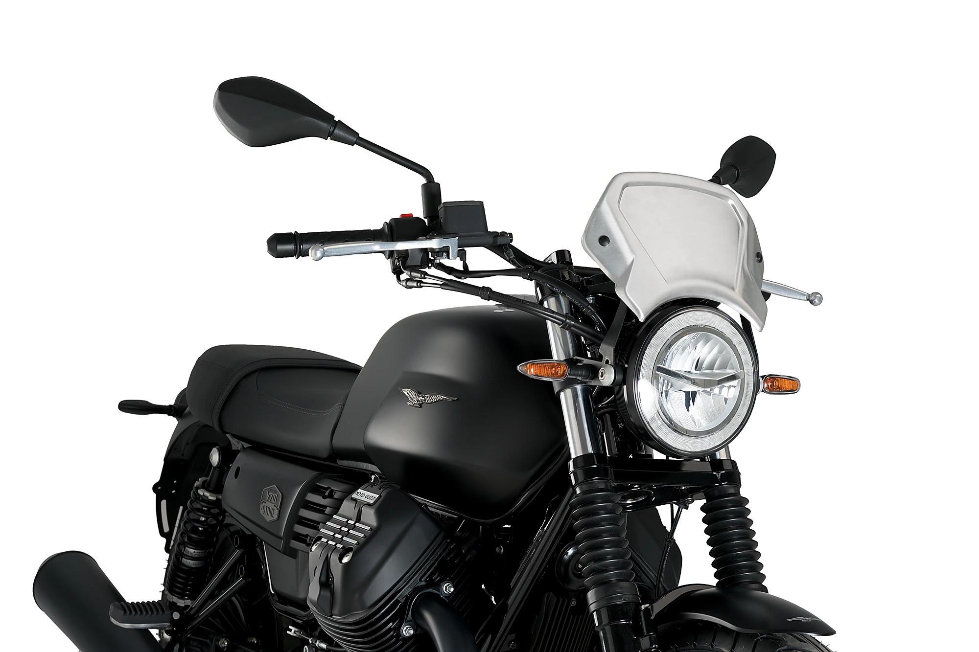 Per quanto riguarda il montaggio, la carenatura frontale in alluminio Puig ha due punti di ancoraggio e un supporto di ferro universale. PUIG ha anche supporti specifici se ne avete bisogno per il vostro modello di moto.