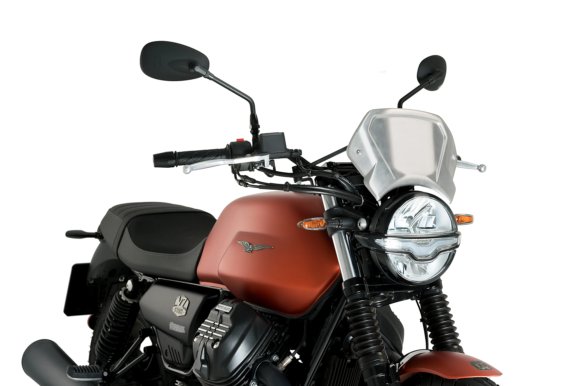 Per quanto riguarda il montaggio, la carenatura frontale in alluminio Puig ha due punti di ancoraggio e un supporto di ferro universale. PUIG ha anche supporti specifici se ne avete bisogno per il vostro modello di moto.