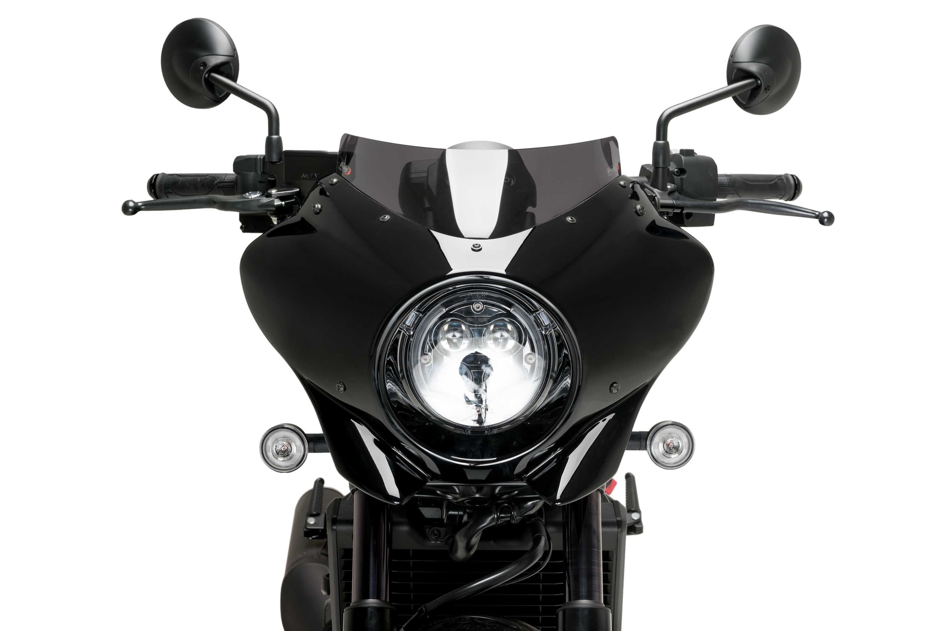 La semicarena Mirage è un accessorio molto universale in quanto il suo design si adatta facilmente alle moto con faro tondo, coprendo la parte anteriore attorno al faro, proteggendolo da sporco e piccoli urti.