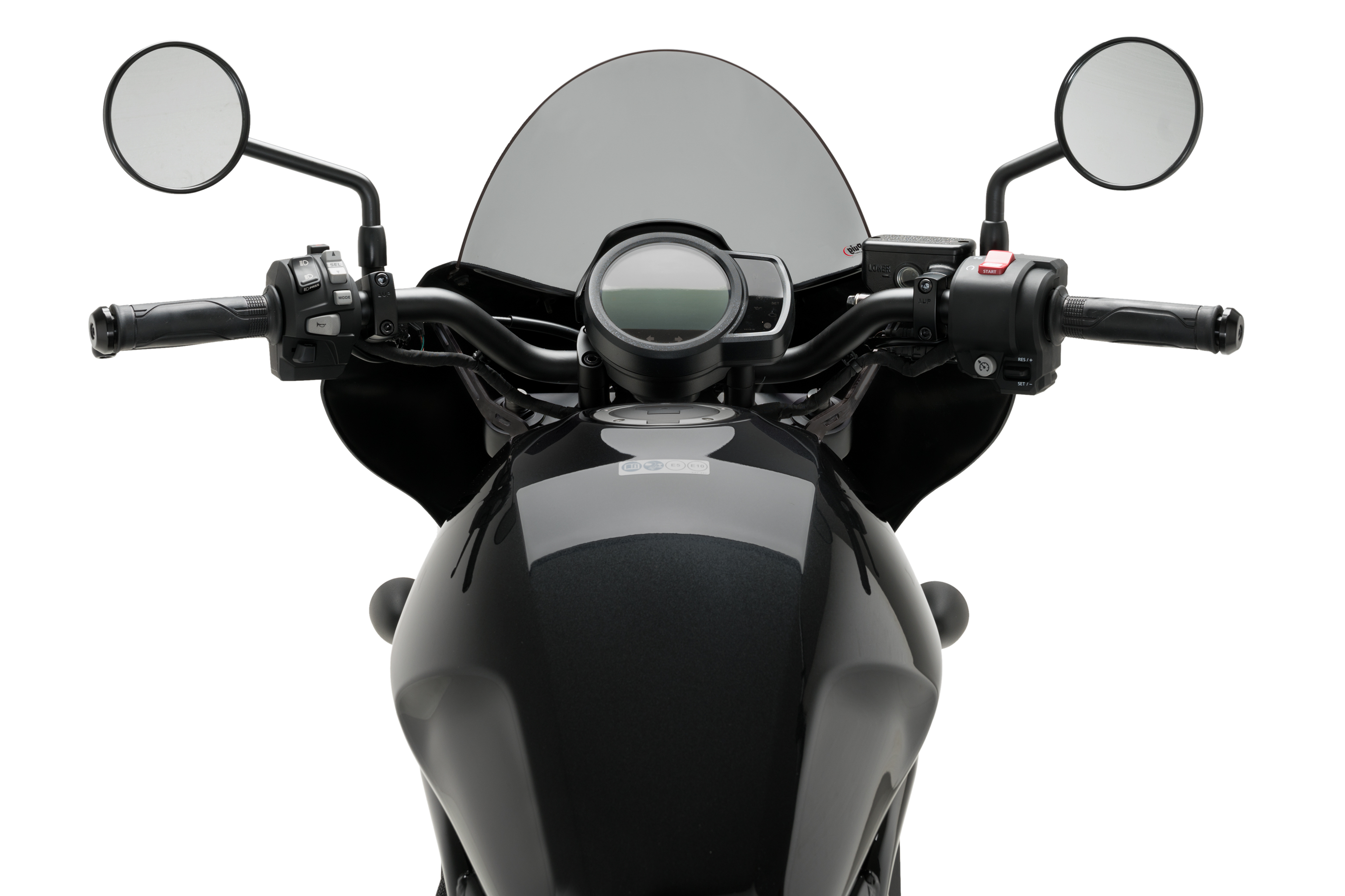 Permette di installare due diversi cupolini, lo Sport, più aggressivo e minimalista, e il cupolino Touring che offre una maggiore protezione aerodinamica. I cupolini sono disponibili in trasparente, fumé chiaro e fumé scuro per abbinarsi alla semicarenatura Mirage, disponibile con finitura nero opaco o nero lucido.