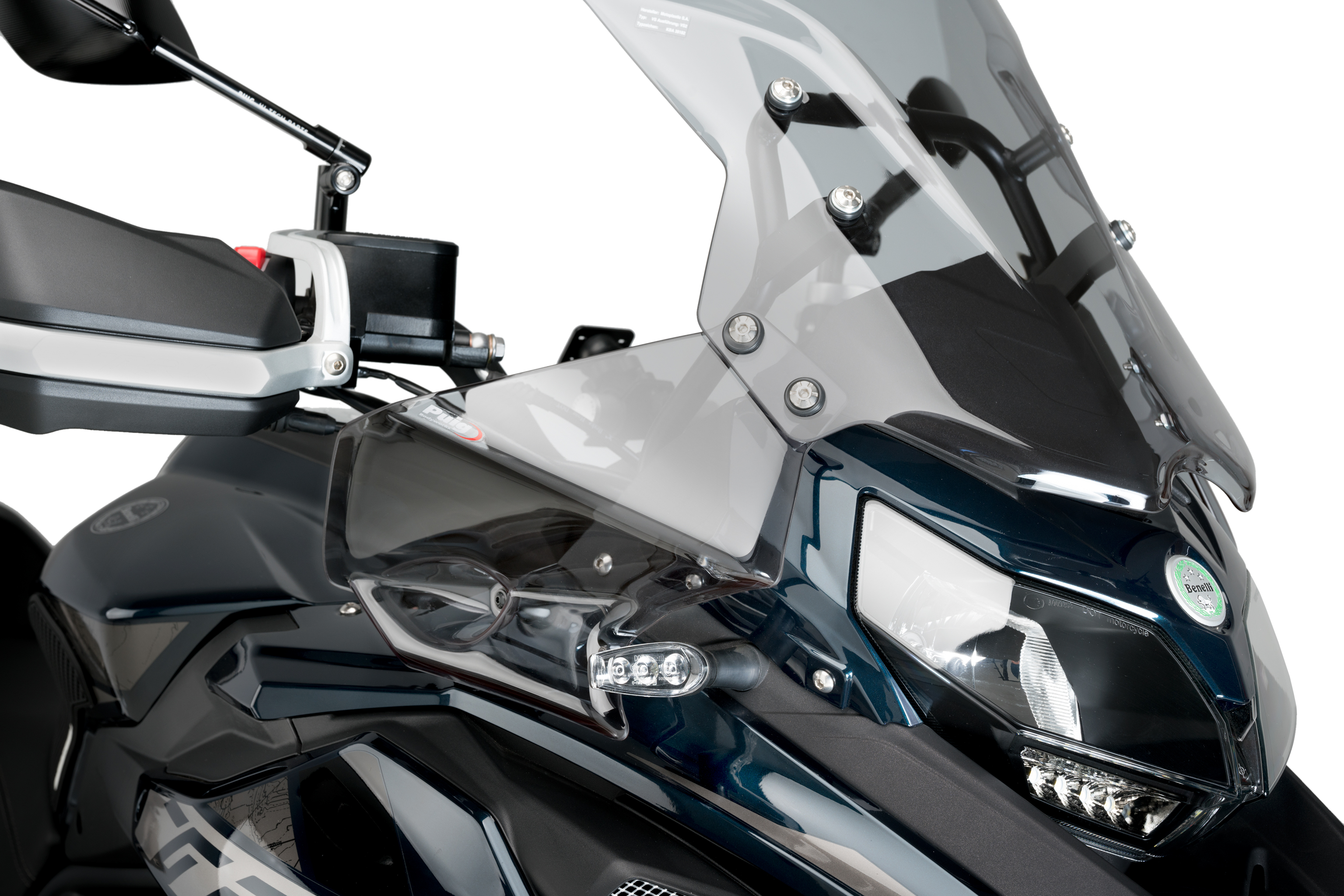 Aumenta la protezione dal vento a bordo del tuo Benelli TRK 502x con i nuovi deflettori anteriori di Puig. Progettati con le ultime tecnologie, sostituiscono i deflettori originali della moto, migliorandone il coefficiente aerodinamico.