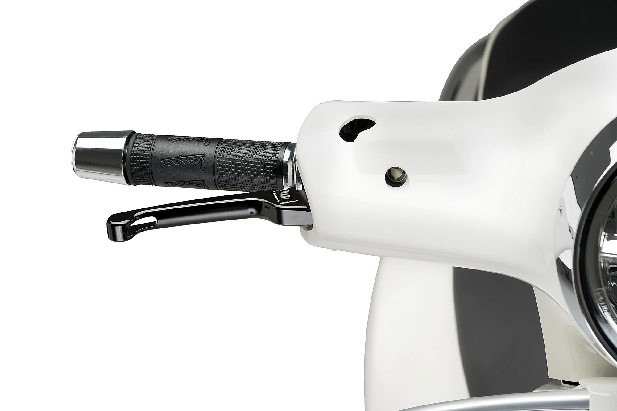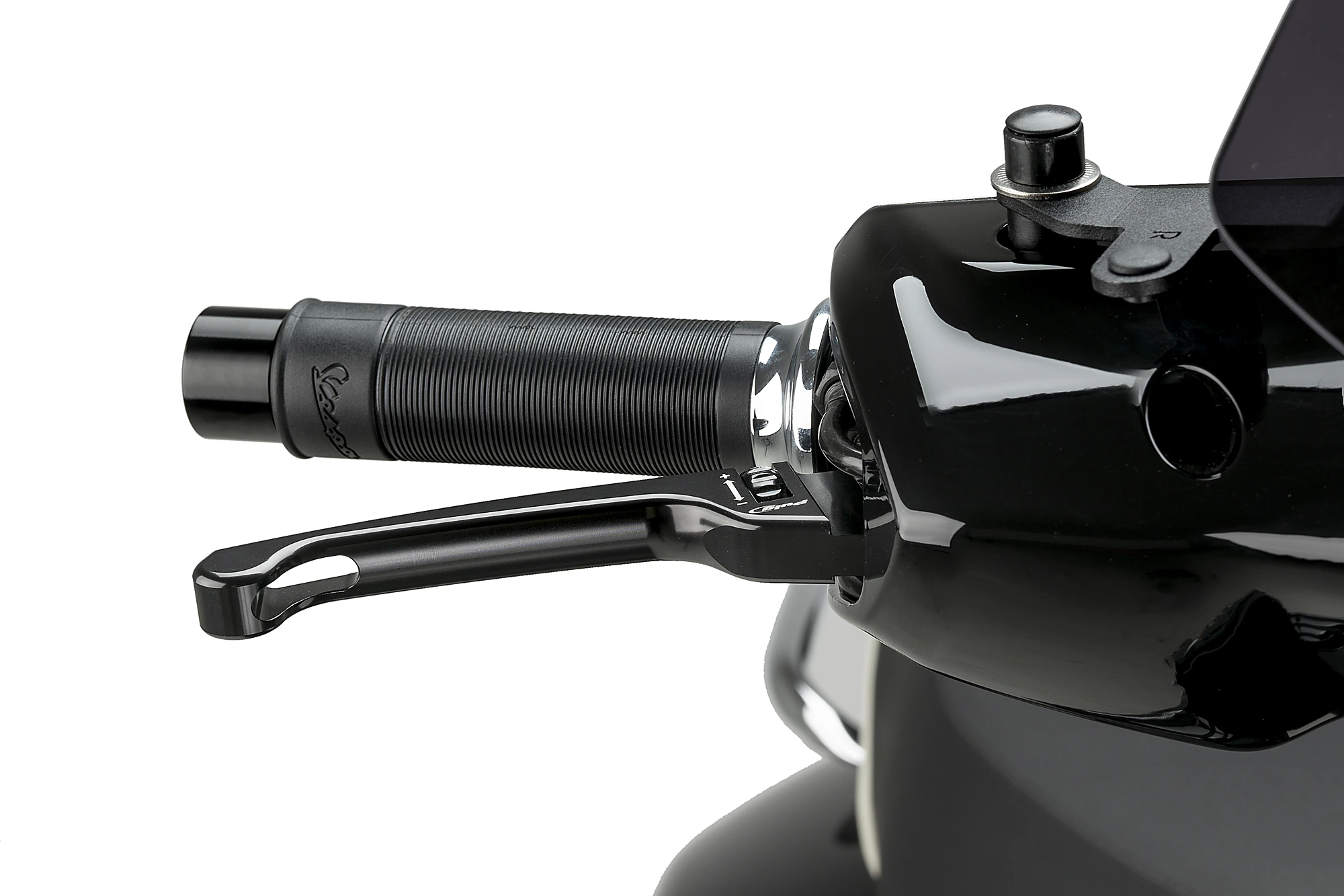 Ma il look non è tutto, anche comfort e sicurezza. Per questo motivo, gli ingegneri Puig hanno ideato un sistema di regolazione semplice e facile da usare. Grazie alla rotella, situata nella zona di ancoraggio, è possibile adattare la distanza che rimane della maniglia dal pugno, soluzione fondamentale per gli utenti con mani più piccole. Permette la regolazione da una distanza minore ad una maggiore rispetto alla leva originale.