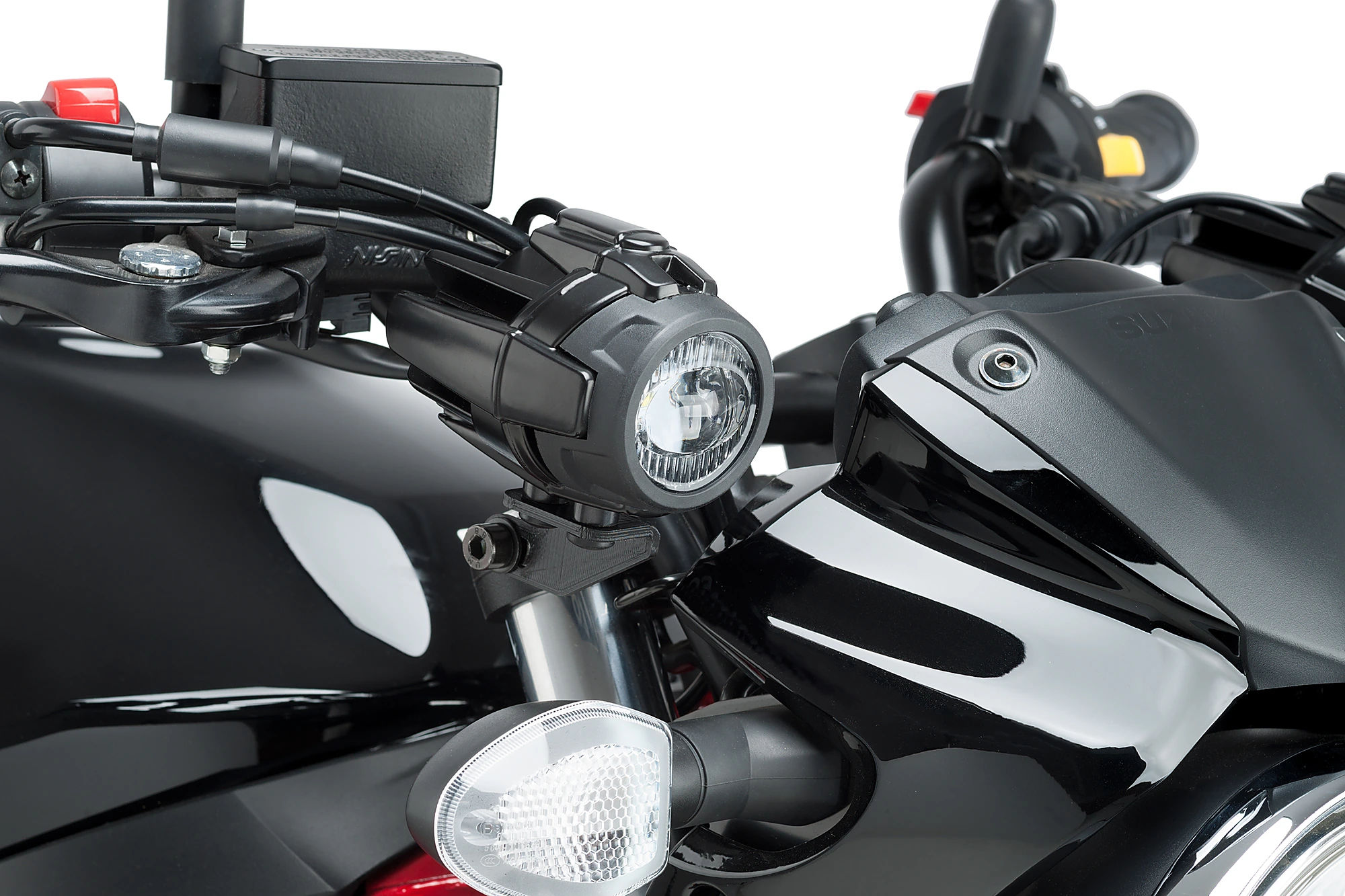 Luci a LED universali fendinebbia con base in alluminio verniciato nero garantisce una migliore visibilità anche in condizioni di nebbia, pioggia o neve. Con la sua tinta bianca luce, offre una differenza di luminosità sulla strada e quindi, possiamo confermare che essi sono il complemento perfetto per il faro della moto.