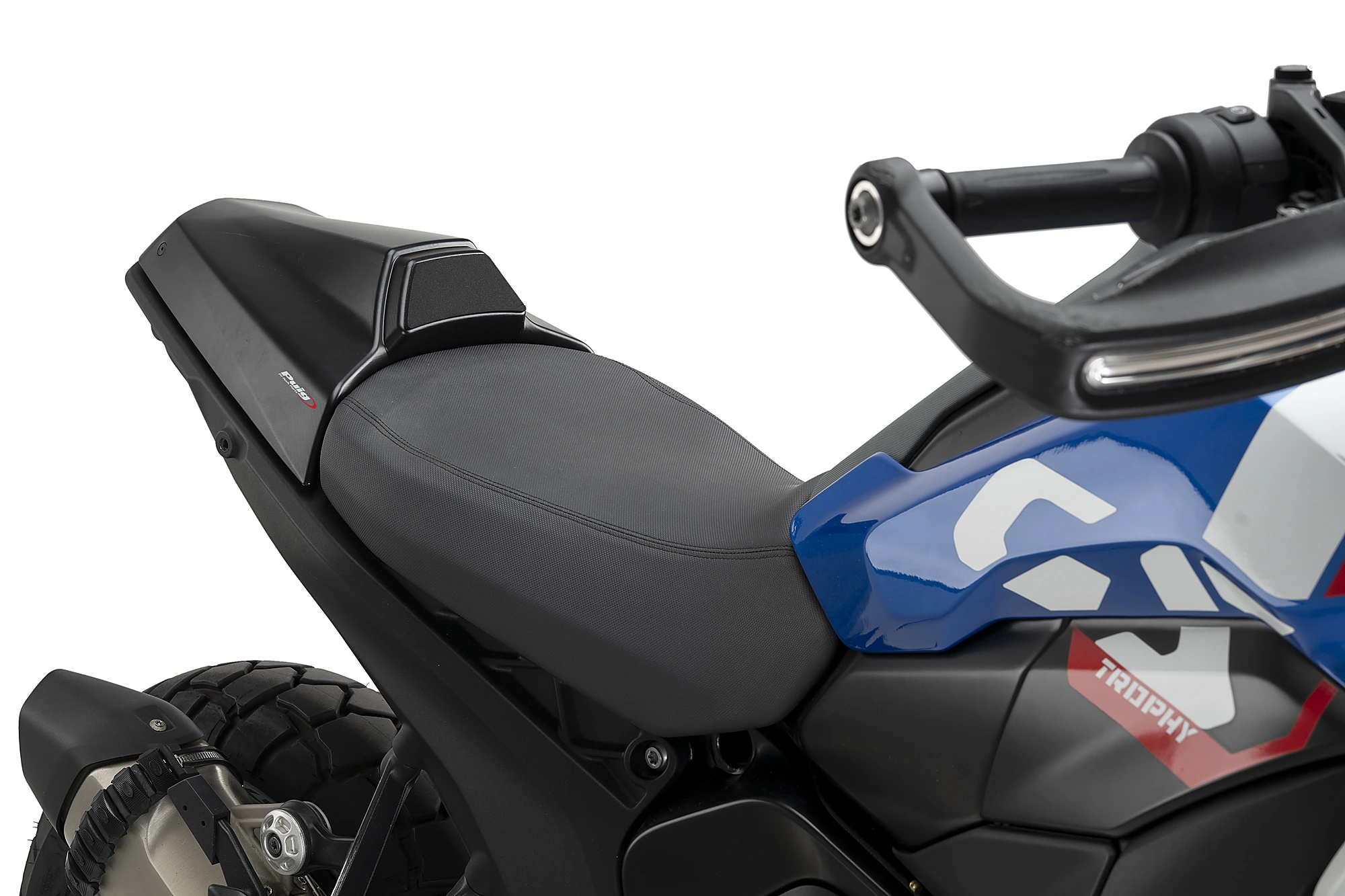 Il suo design si adatta perfettamente al nuovo telaietto posteriore della R1300GS, dalle forme marcate e angolose, rafforzando il concetto PISTA di Puig. Spiccano le due linee diagonali che seguono la geometria del telaietto e la protuberanza nella zona della sella, che offre un supporto aggiuntivo al pilota durante la guida ad alta velocità.