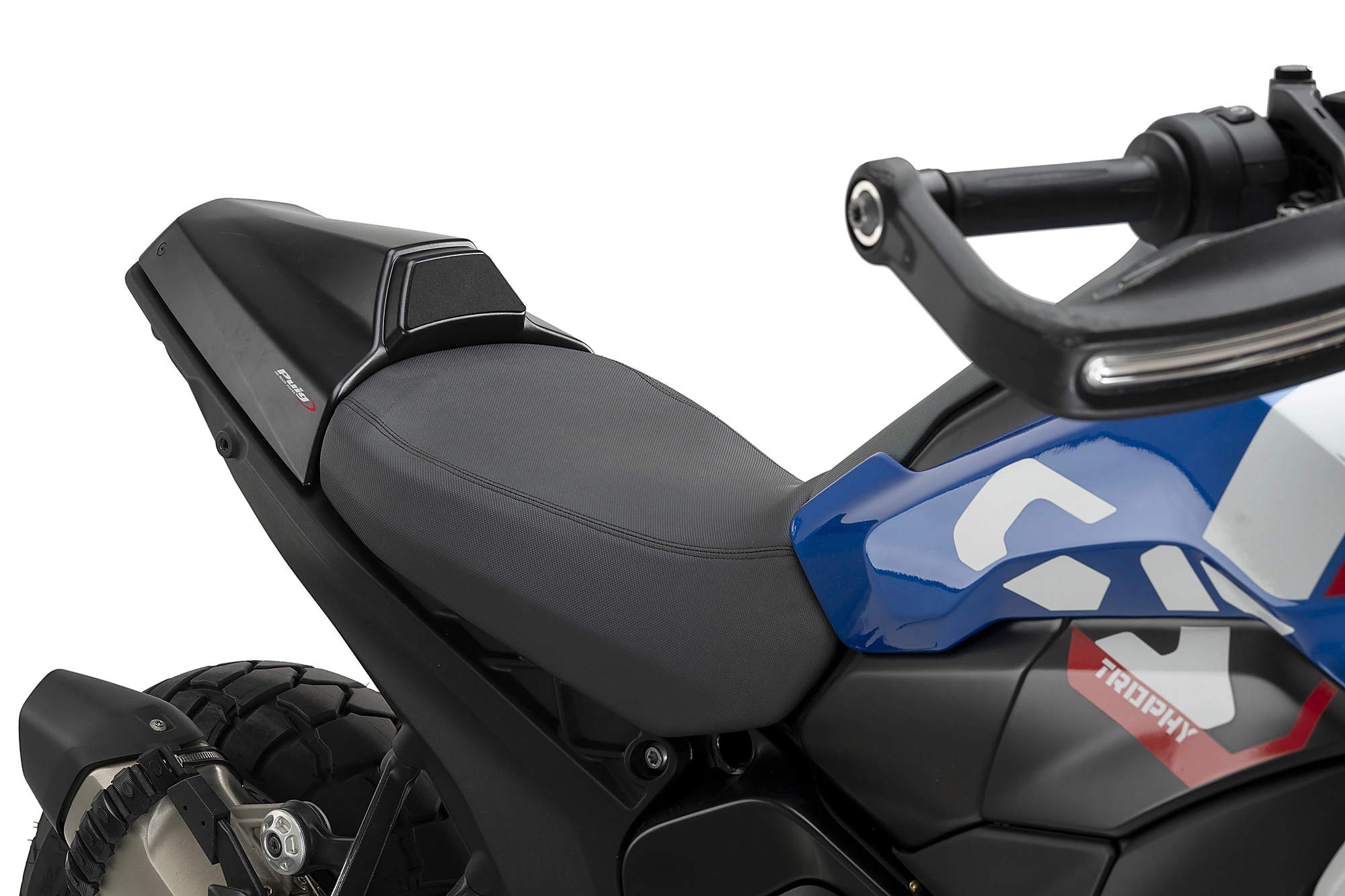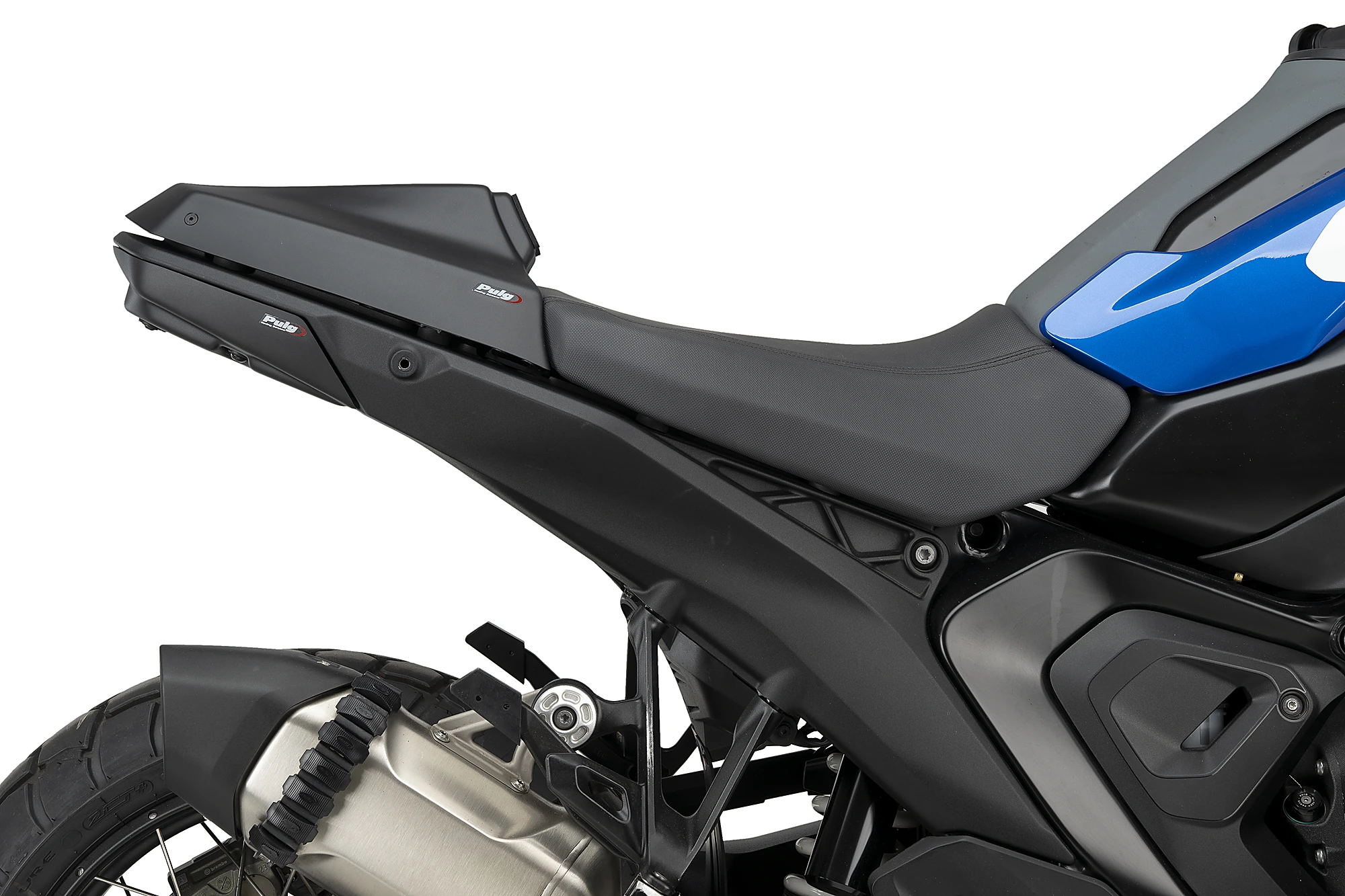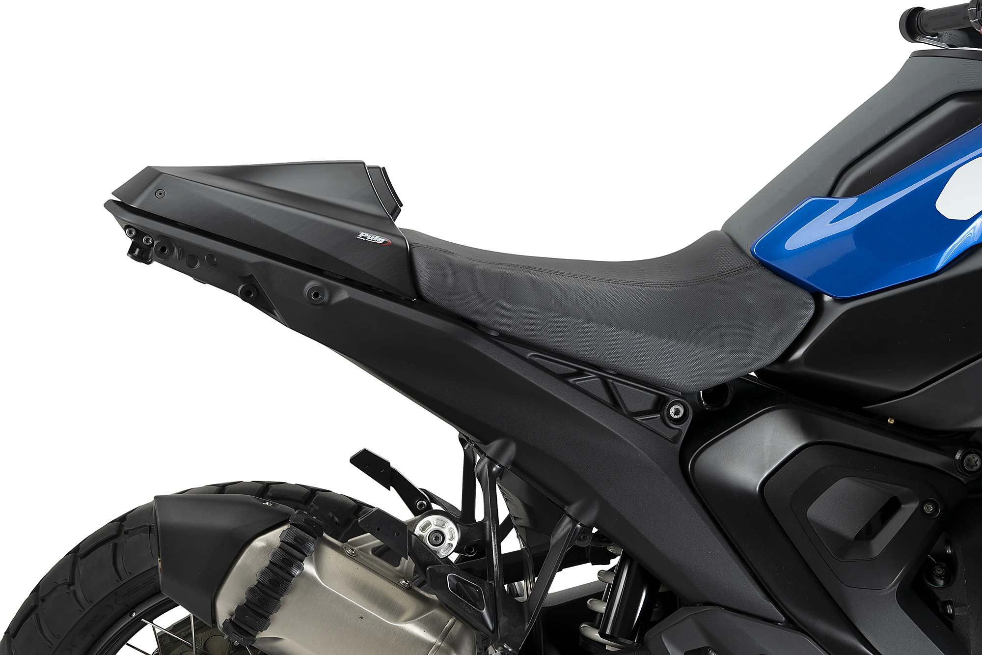Il codino Puig per la BMW R1300GS, parte del Kit PISTA, rappresenta una nuova generazione di design ispirata alle moto da competizione. Sostituendo la sella del passeggero, snellisce la parte posteriore della moto e le conferisce un carattere molto più aggressivo e sportivo, evocando l’aspetto delle moto da corsa monoposto.