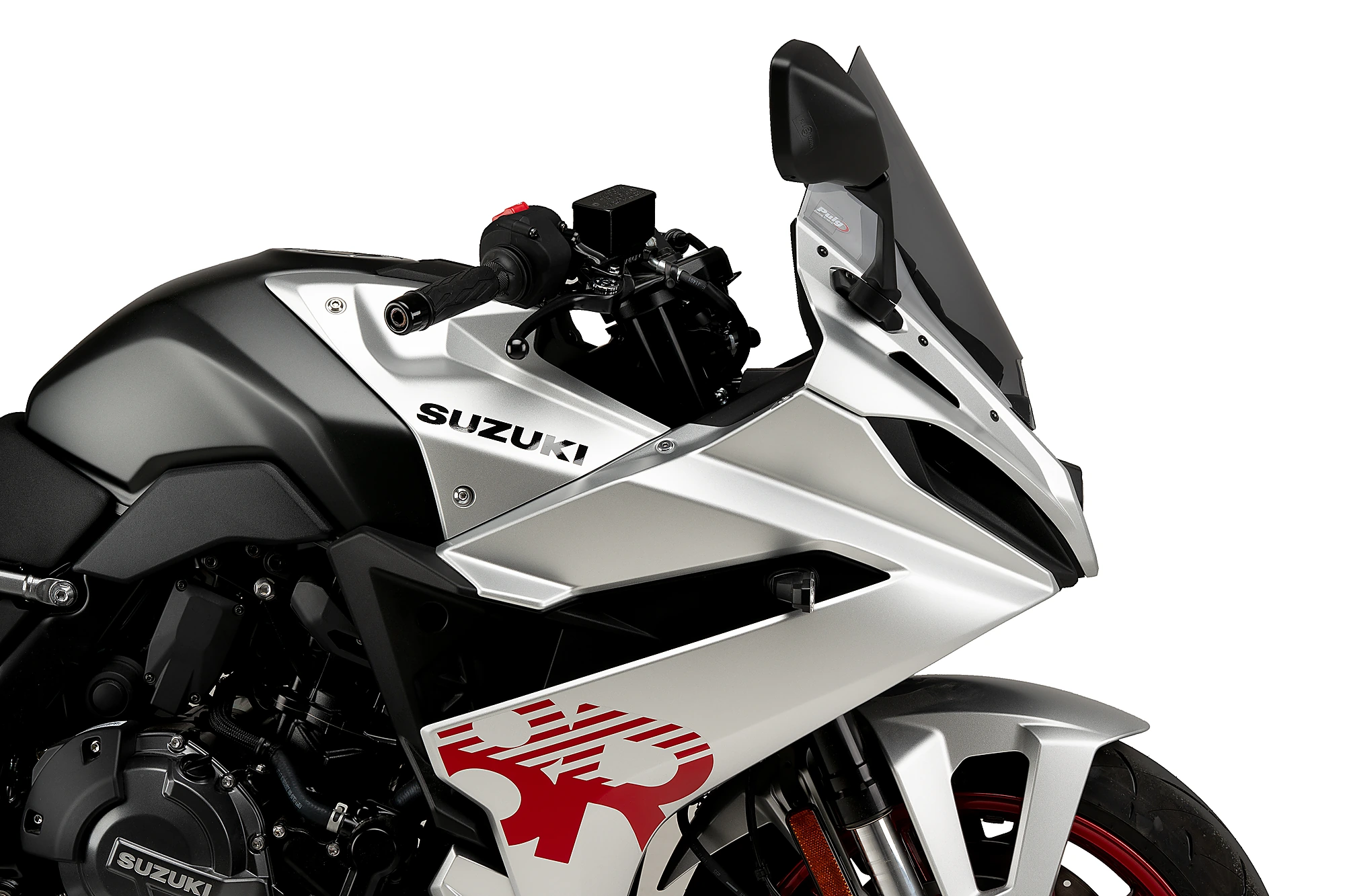 Il suo design, ispirato alle cupole utilizzate nei campionati MotoGP e WorldSBK, mantiene la forma originale ma aumenta l'altezza per ottenere una migliore aerodinamica del pilota, fornendo al contempo un look sportivo e personalizzato alla tua Suzuki GSX-8R. Questo miglioramento aerodinamico ridurrà il disagio per il casco del pilota in aree dove si raggiungono alte velocità, come il rettilineo di un circuito.