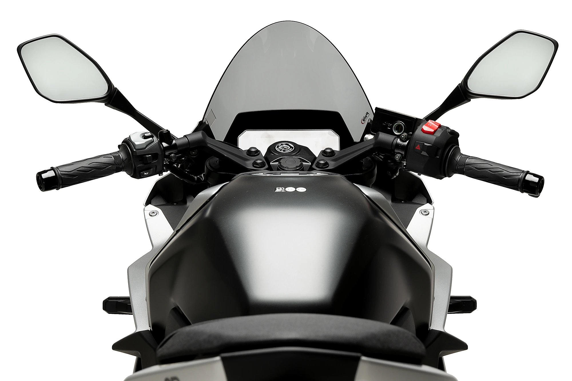 Con dimensioni di 305 mm di larghezza per 385 mm di altezza. La cupola R-Racer di Puig è 85 mm più alta della cupola originale della Suzuki GSX-8R.