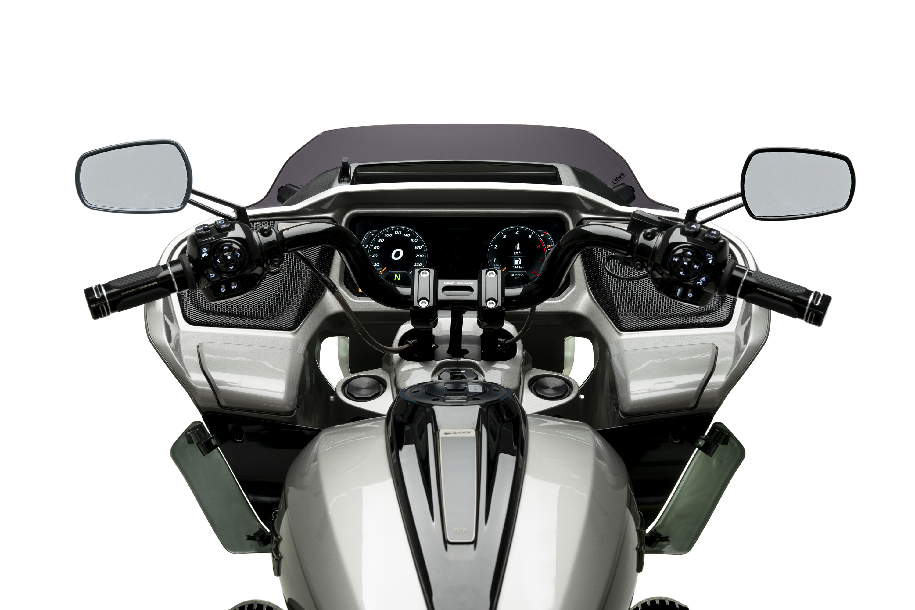 Uno studio aerodinamico approfondito ha permesso di sviluppare un cupolino che migliora significativamente la protezione del pilota. Grazie al suo design ottimizzato, il motociclista subisce 0,4 kg in meno di pressione dell'aria rispetto allo schermo originale, con un miglioramento del 38 %.